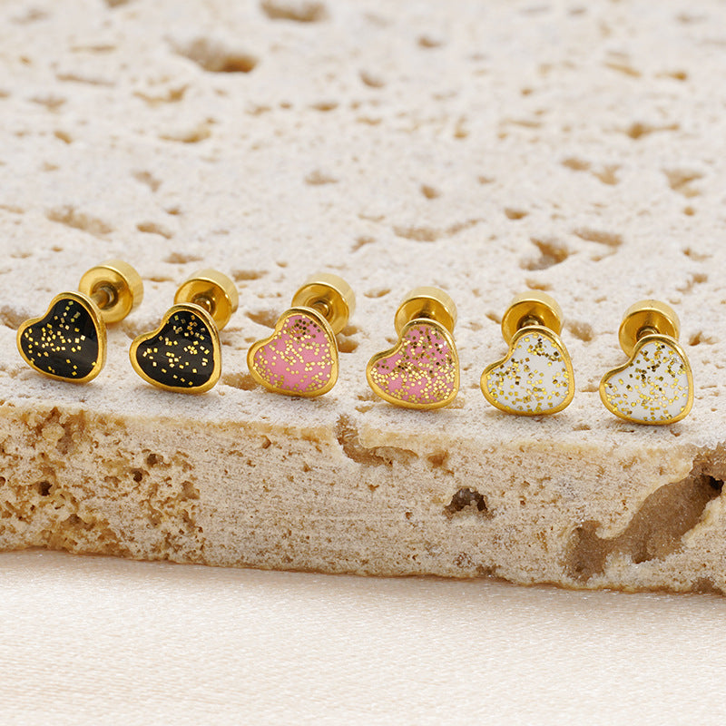 Wholesale Stainless steel gold-plated heart-shaped earrings
