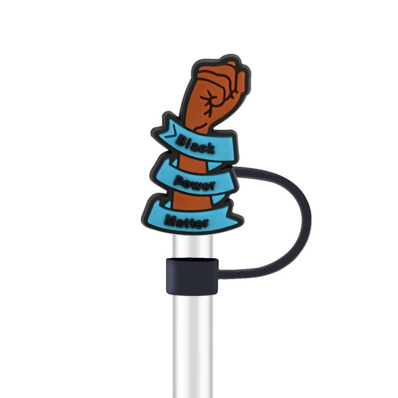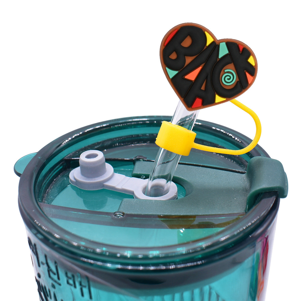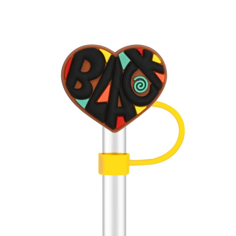 Wholesale 100pcs randomly black girl fashion series straw covers, 10mm soft silicone straw tube cap.