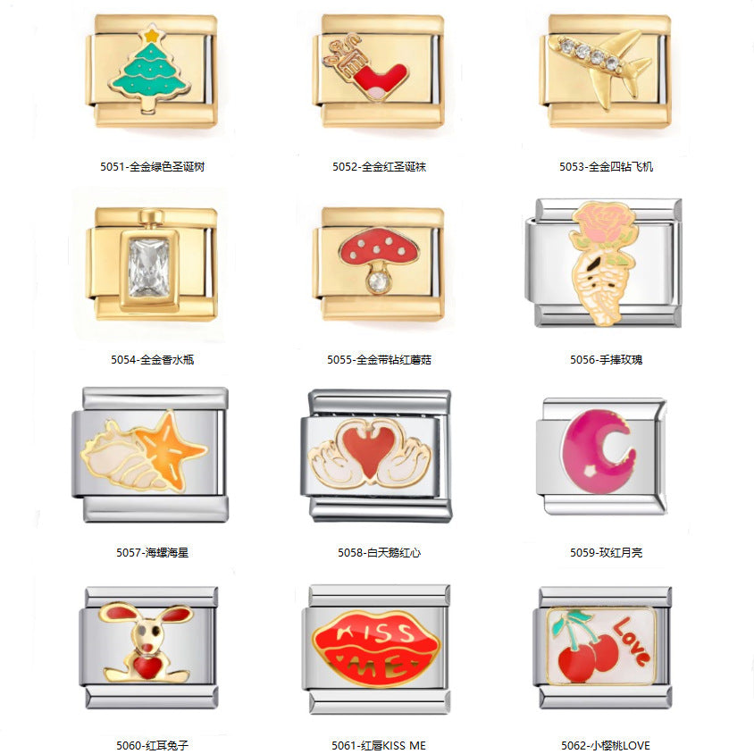 Wholesale 2PCS 9mm Italian Charm Starter Bracelets DIY square Single Section Creative Stainless Steel Composable Bracelet