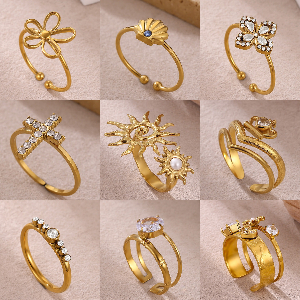 Wholesale Adjustable stainless steel zircon cross flower ring