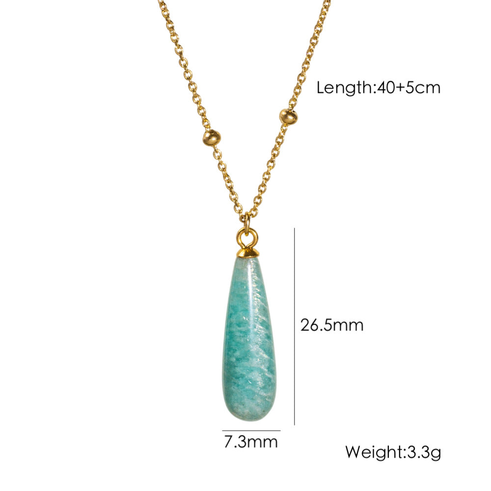 Wholesale Drop-shaped Natural Stone Pendant Stainless Steel Necklace