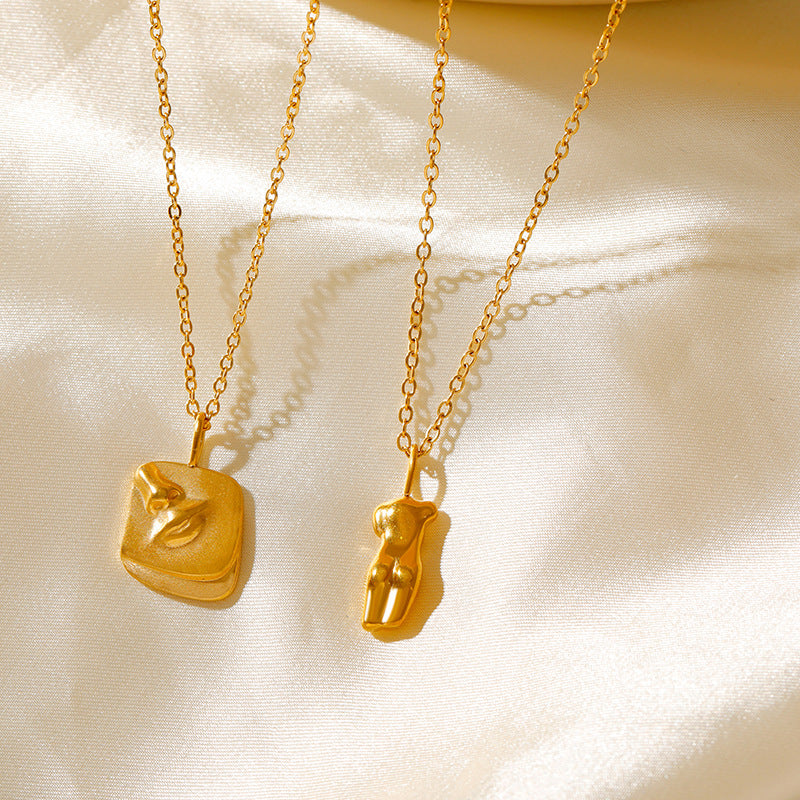 Wholesale Stainless steel exaggerated hip-hop figure square pendant necklace