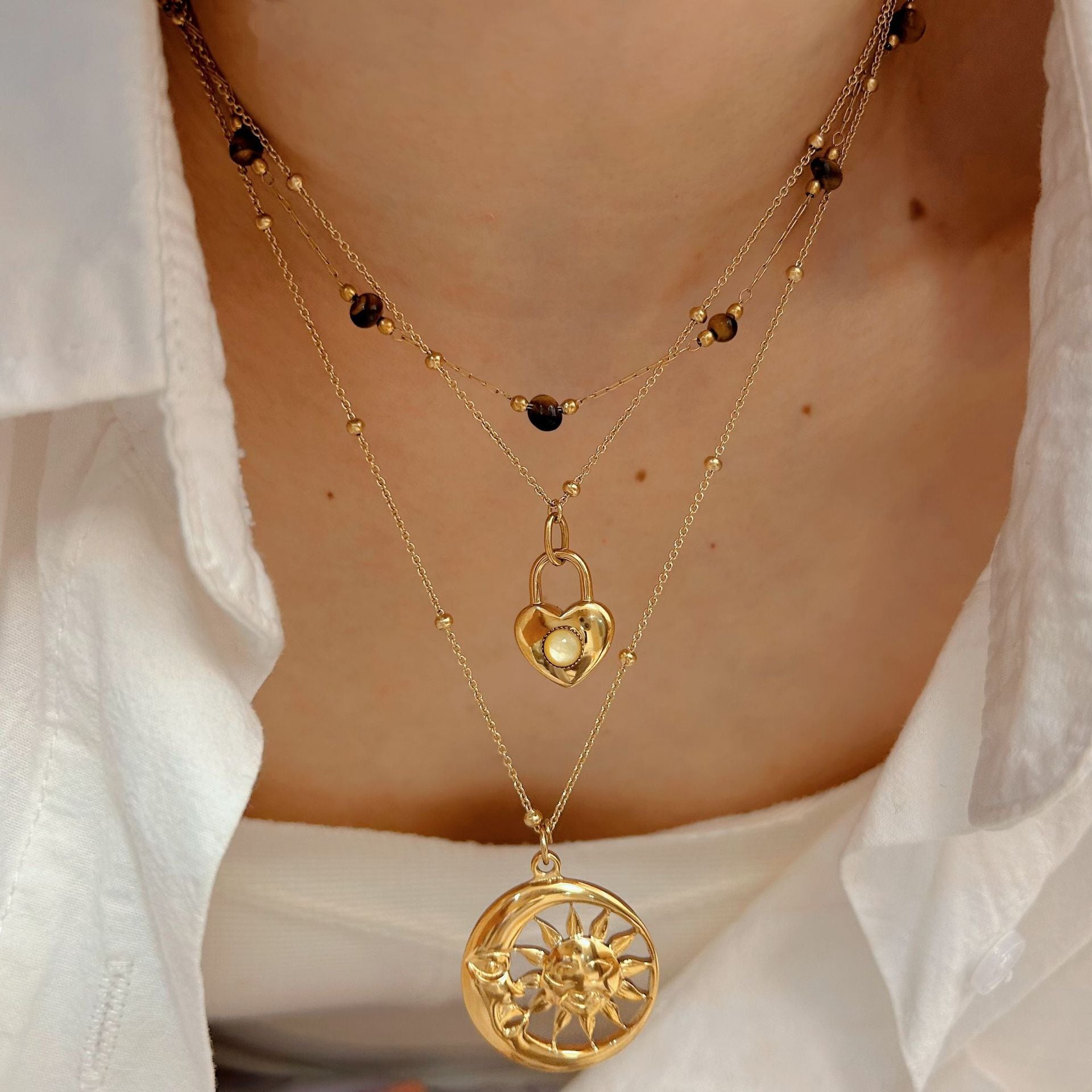 Wholesale Lucky Sun Moon Pendant Stainless Steel Necklace