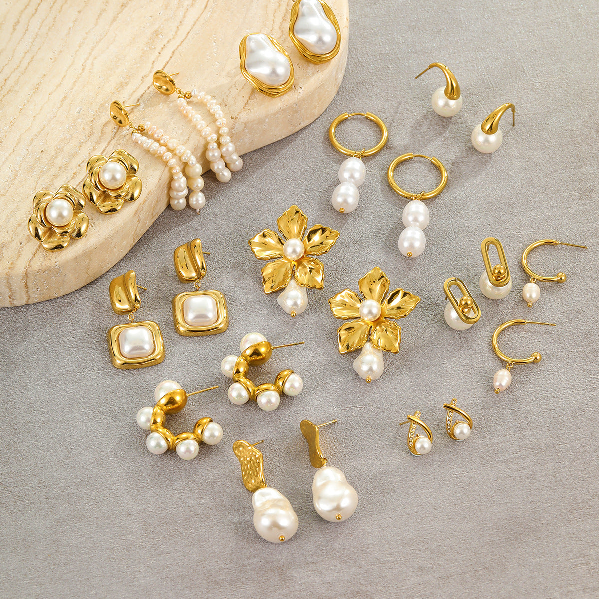 Wholesale Stainless Steel Earrings Baroque Pearl Earrings