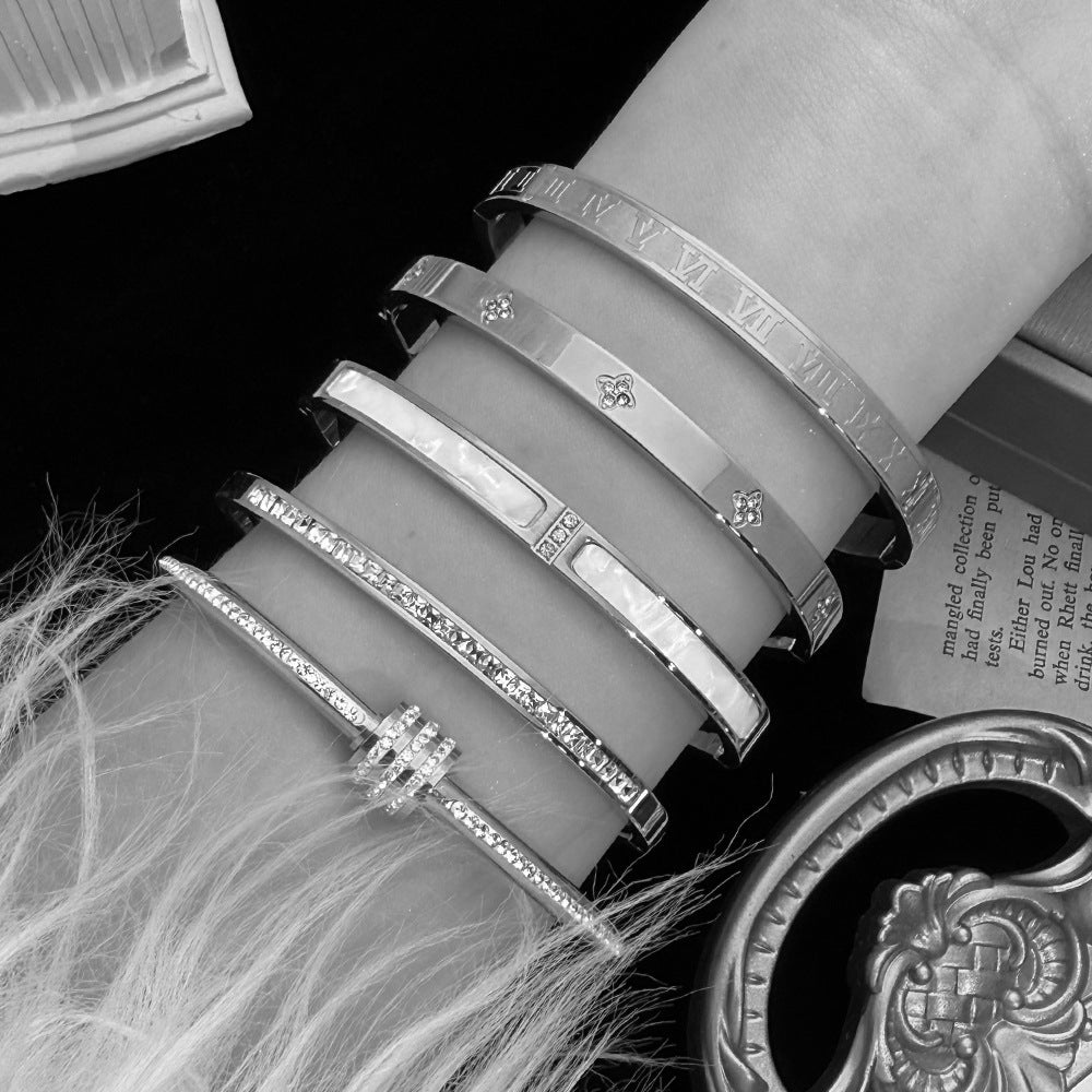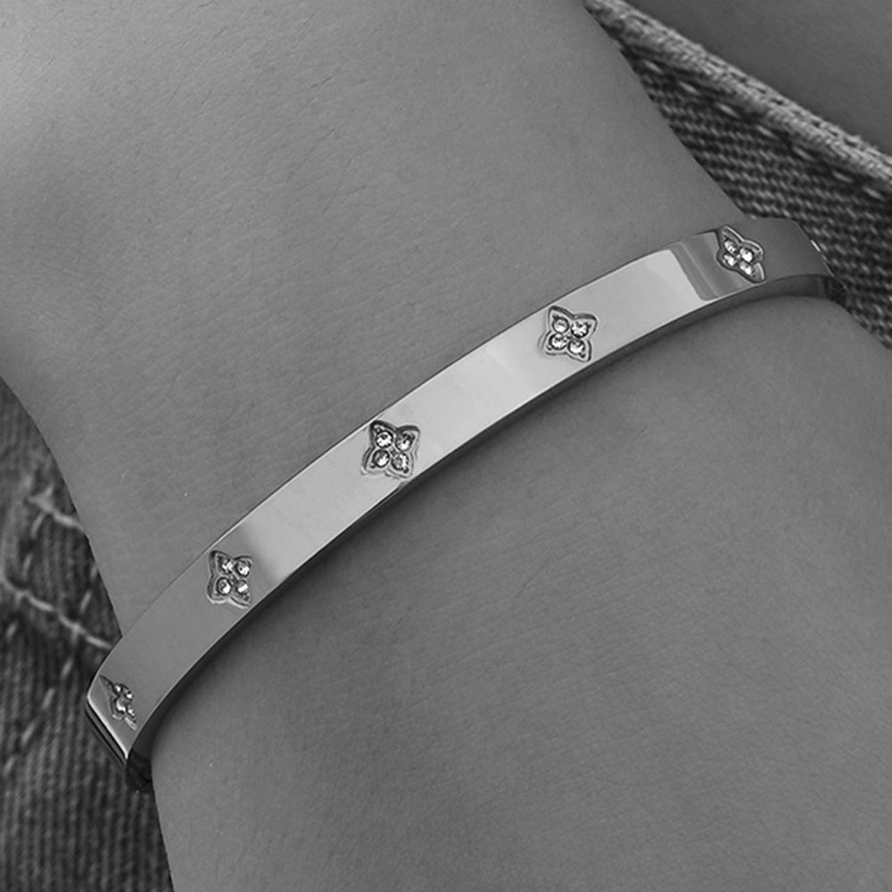 Wholesale Steel and titanium four-leaf clover and starry sky zircon-encrusted bracelet ACCVIP