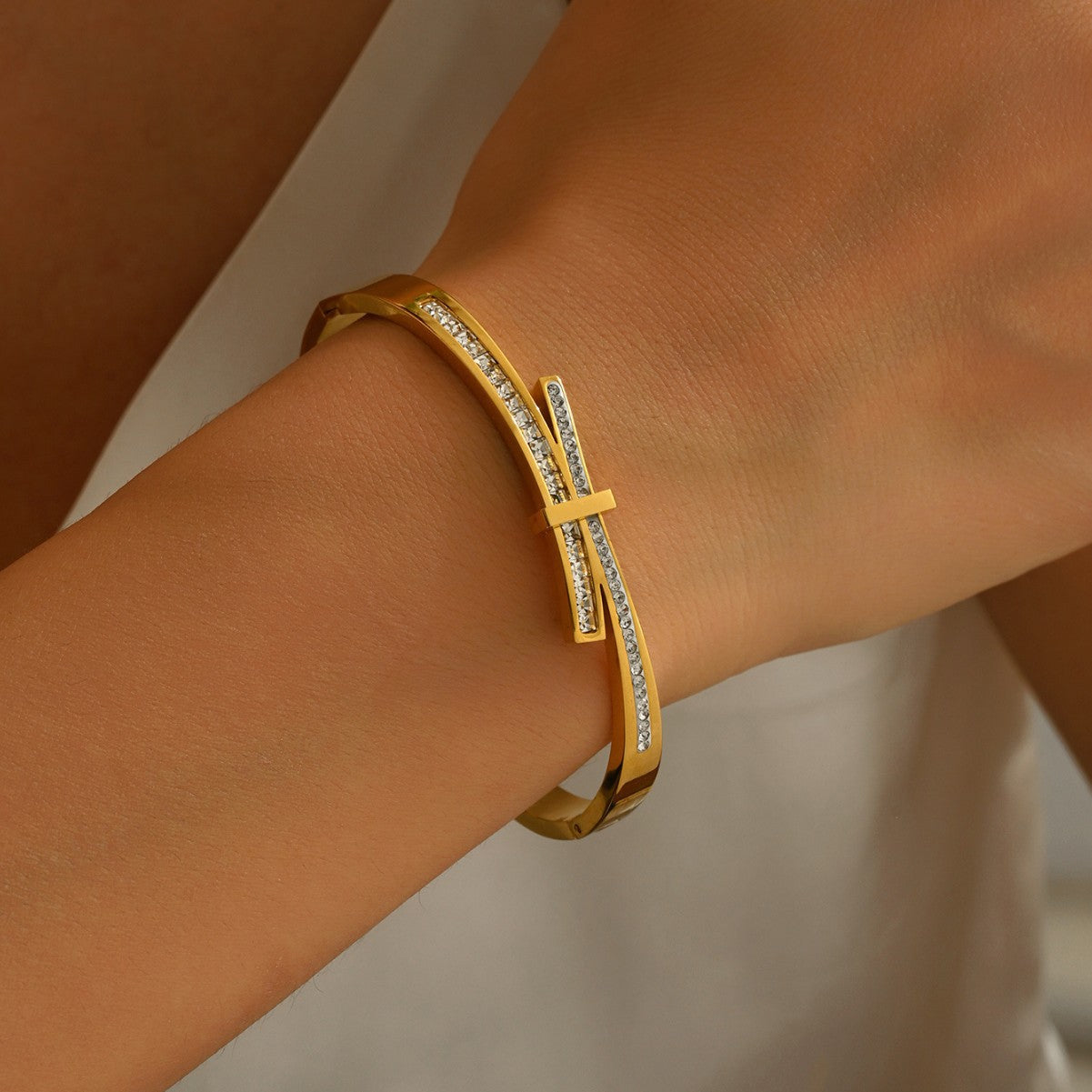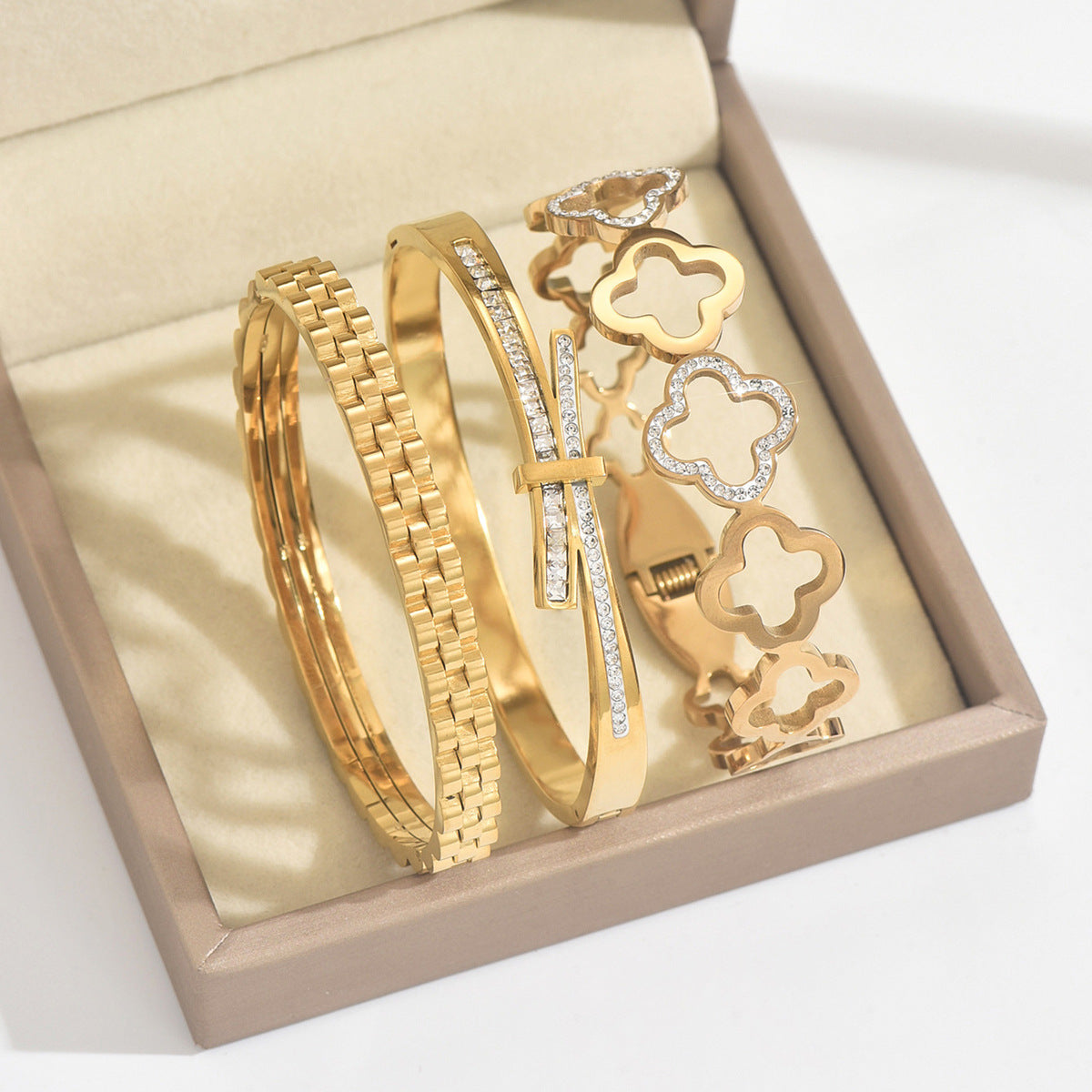 Wholesale Steel and titanium four-leaf clover bracelet with zircon setting ACCVIP