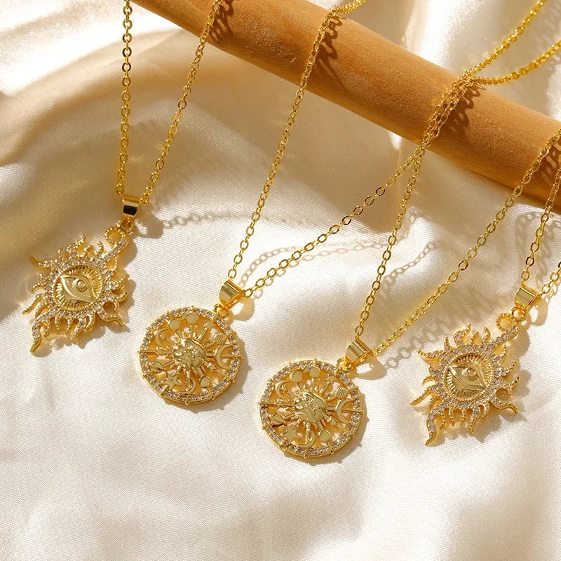 Wholesale Sunflower Full Diamond Necklace Devil's Eye Stainless Steel 18k Pendant Temperament Clavicle Chain