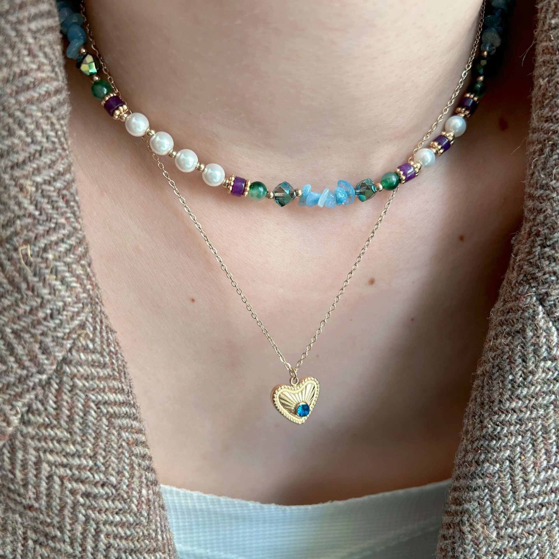 Wholesale versatile love necklace natural stone beaded stainless steel necklace
