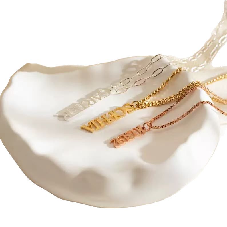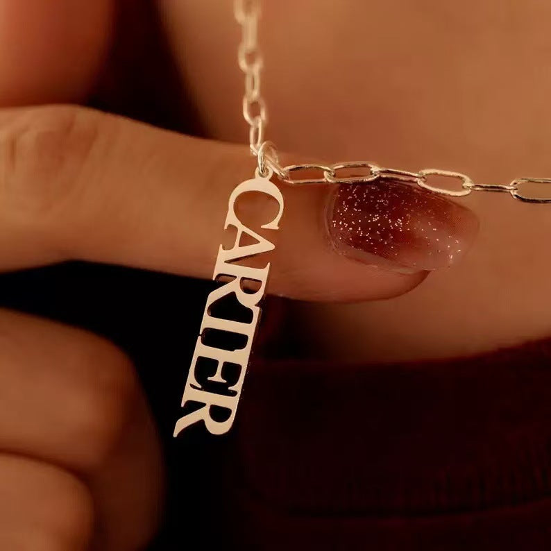 Wholesale Hollow English Letter Round Bead Pendant Stainless Steel Necklace
