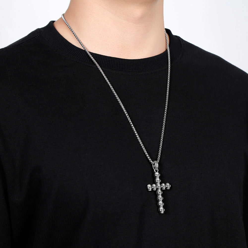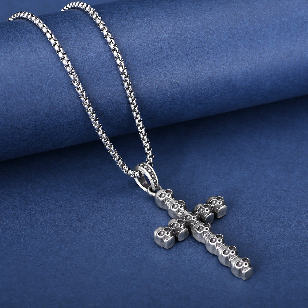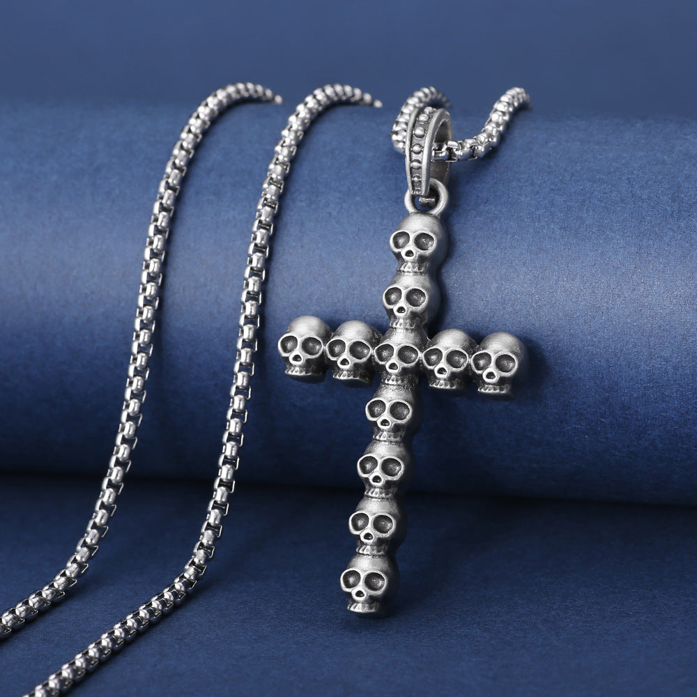 Wholesale Punk Style Diablo Skull Cross Pendant Men's Titanium Steel Hip-Hop Necklace