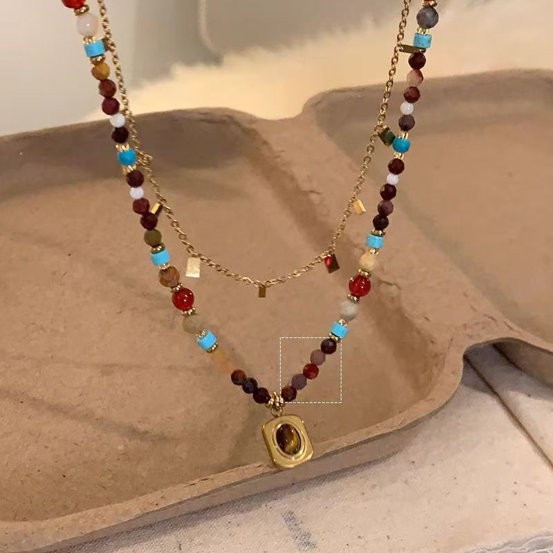 Wholesale Retro Sugar Color Beaded Tiger Eye Necklace