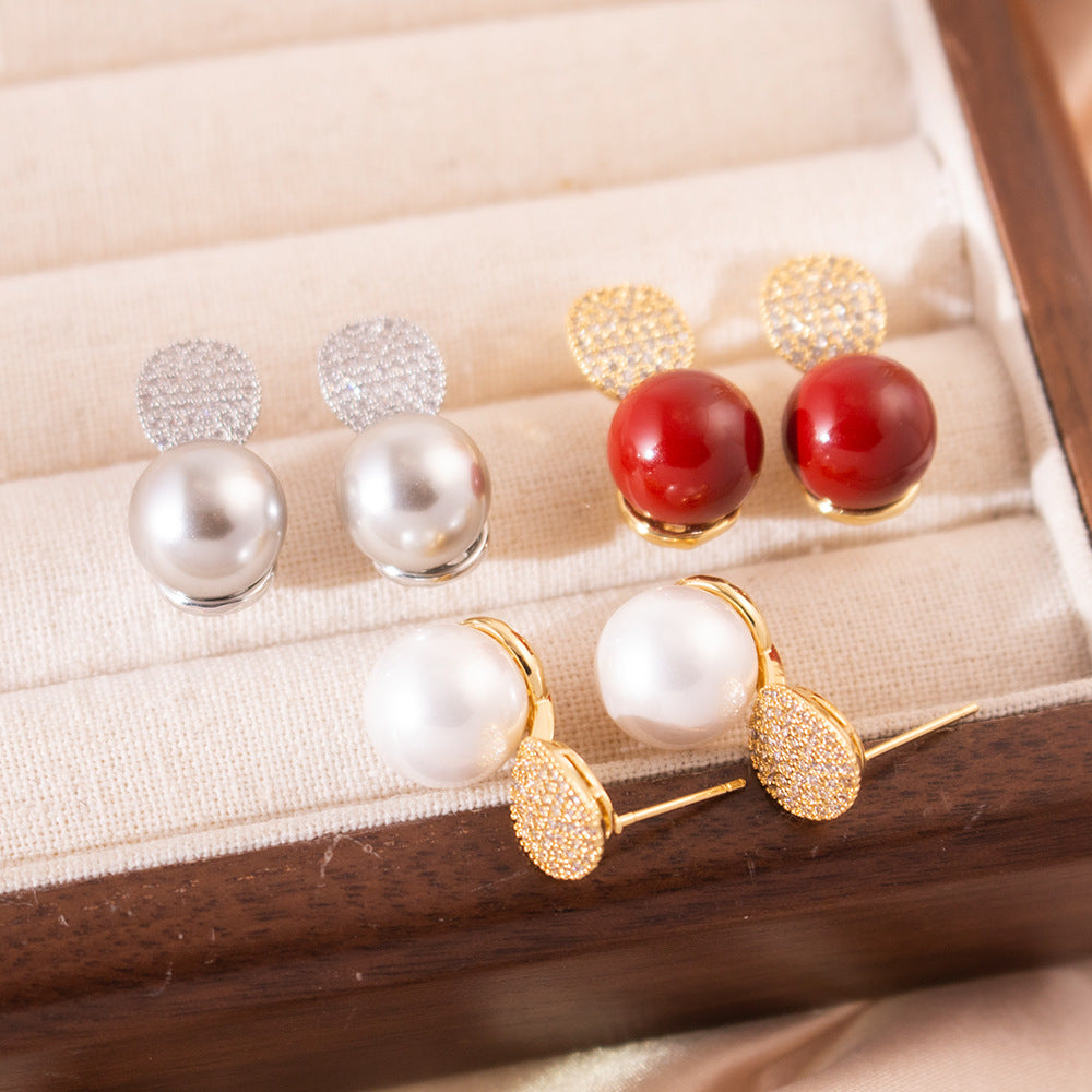 Wholesale Silver Needle Zircon Geometric Pearl Earrings
