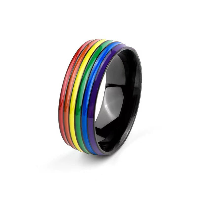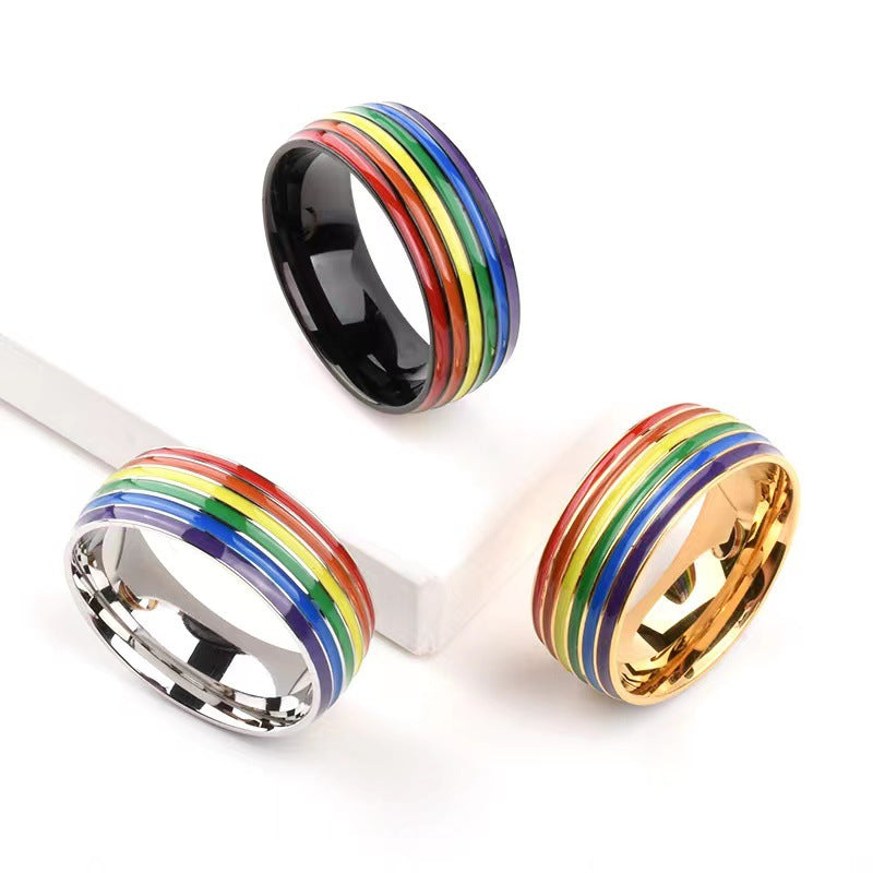 Wholesale Titanium steel non-allergic tail ring cute rainbow couple ring