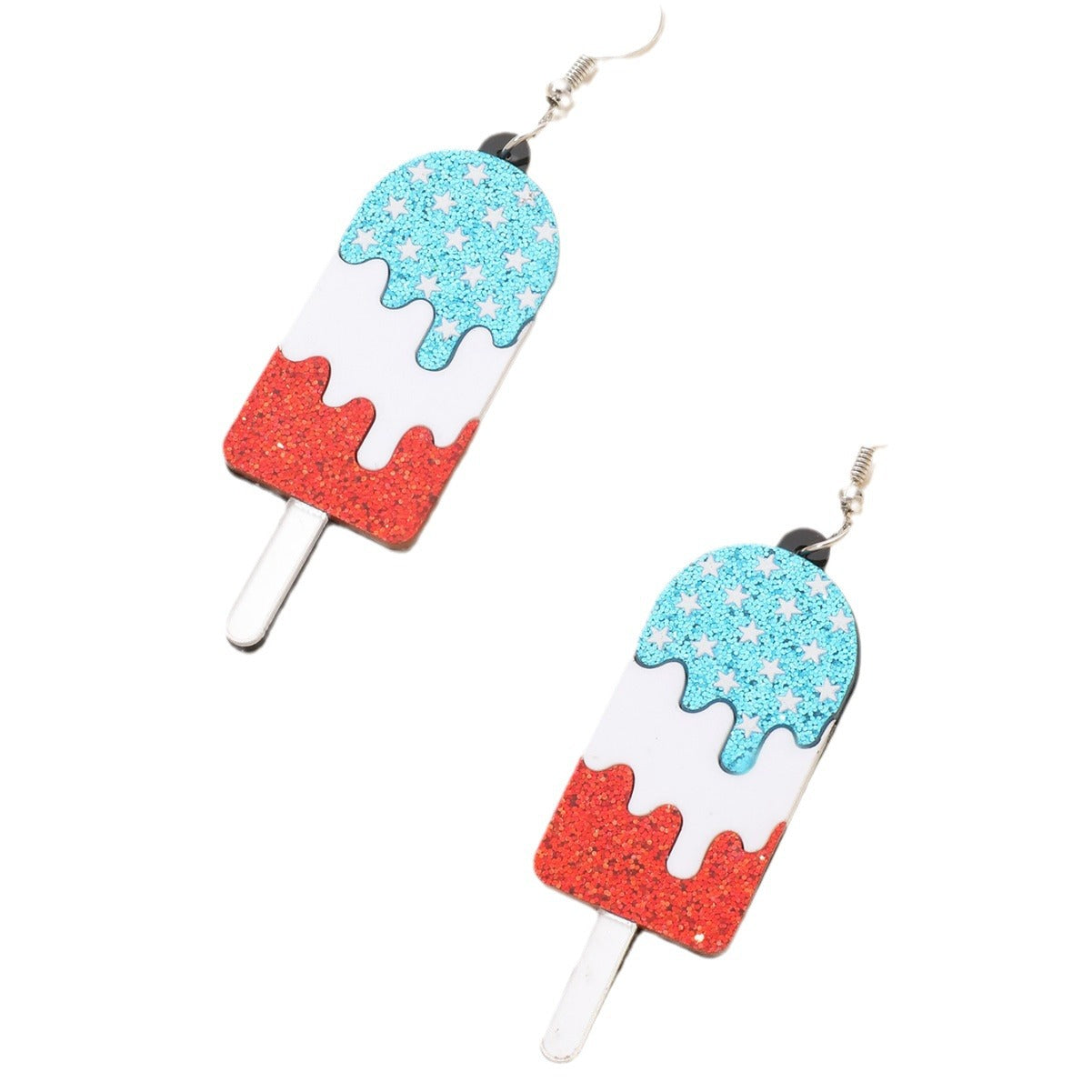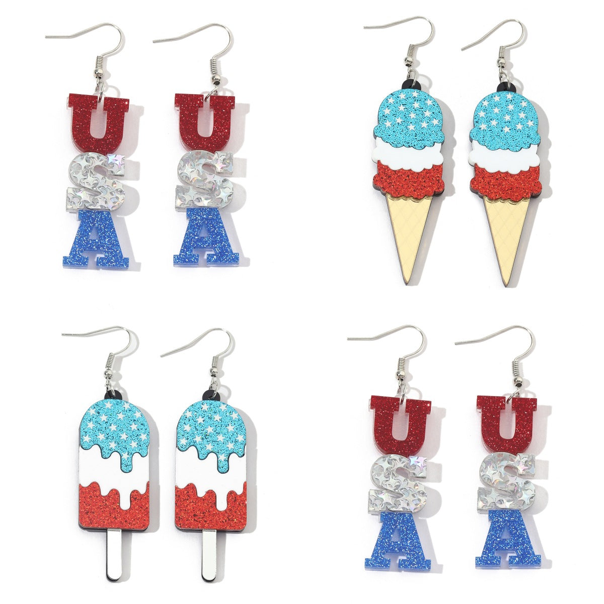 Wholesale American Independence Day Festival Glitter Pink Red White Blue Three Color Earrings
