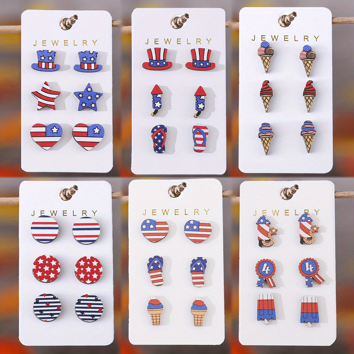 Wholesale Independence Day Striped Stars Love Fireworks Slippers Round Earrings suit