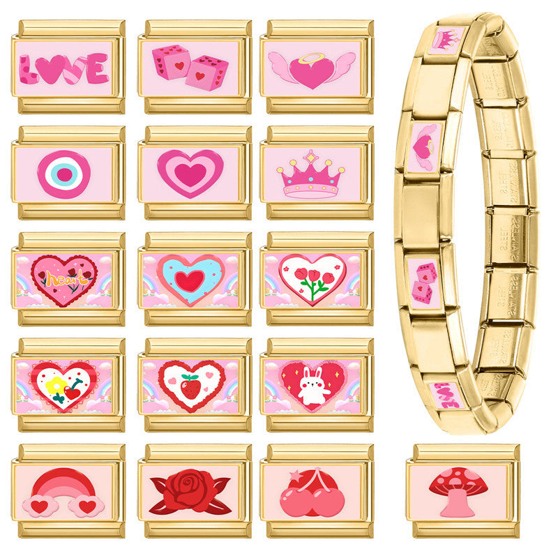 Wholesale Italian Charm Bracelet 9mm DIY Splicing Rose Pink Series Stainless Steel Composable Bracelet