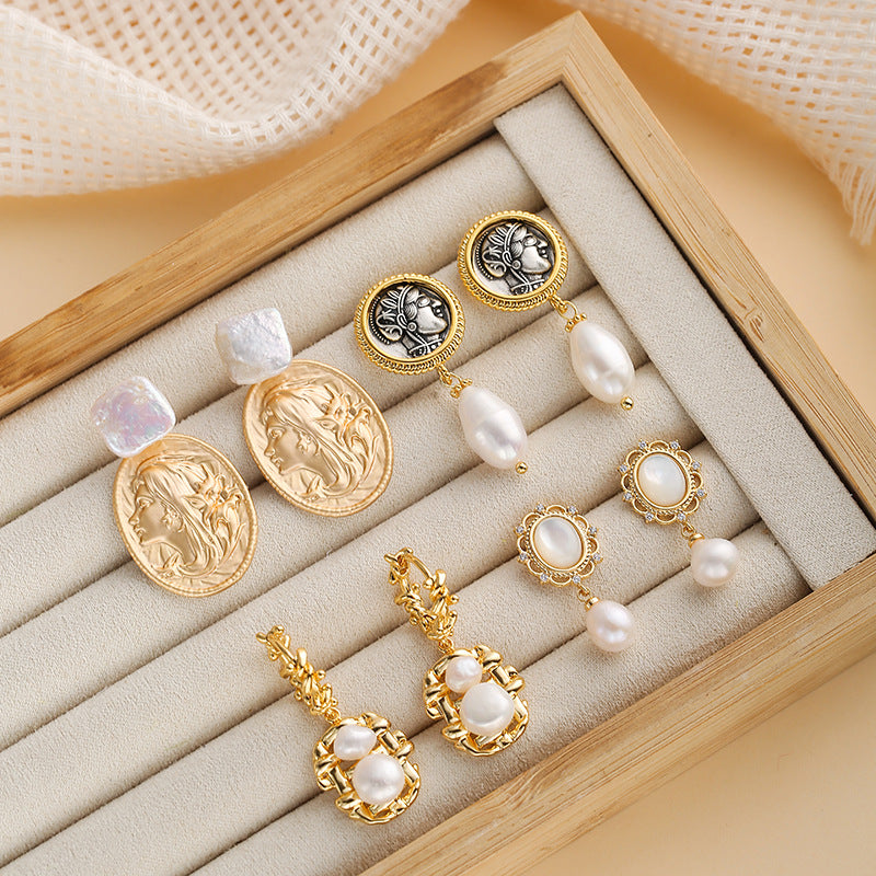 Wholesale Baroque Real Pearl Earrings S925 Silver Needle Ear Jewelry