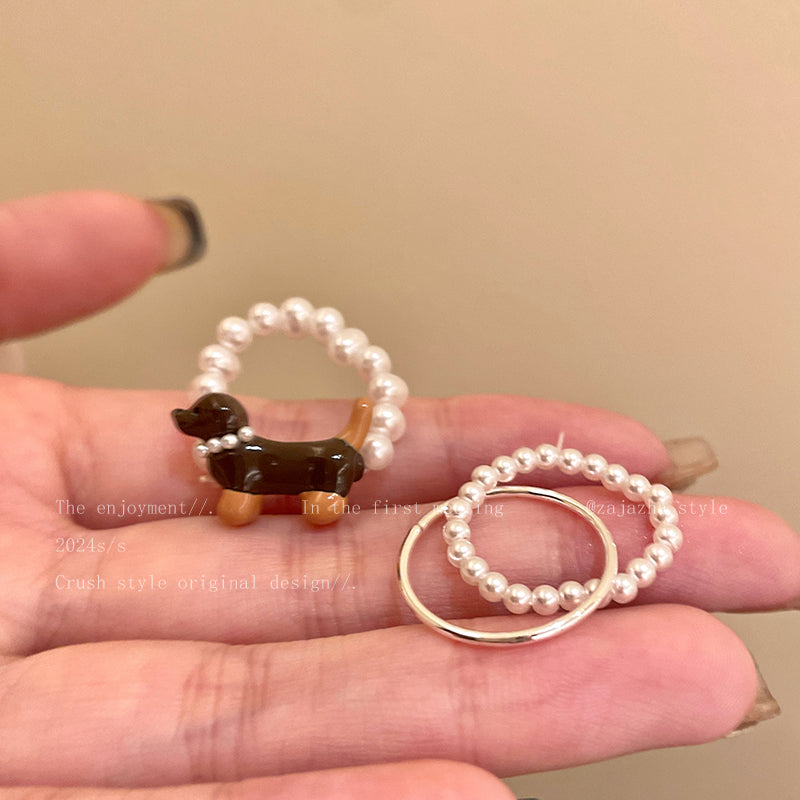 Wholesale Cute Dachshund Pearl Ring Light Luxury Finger Ring