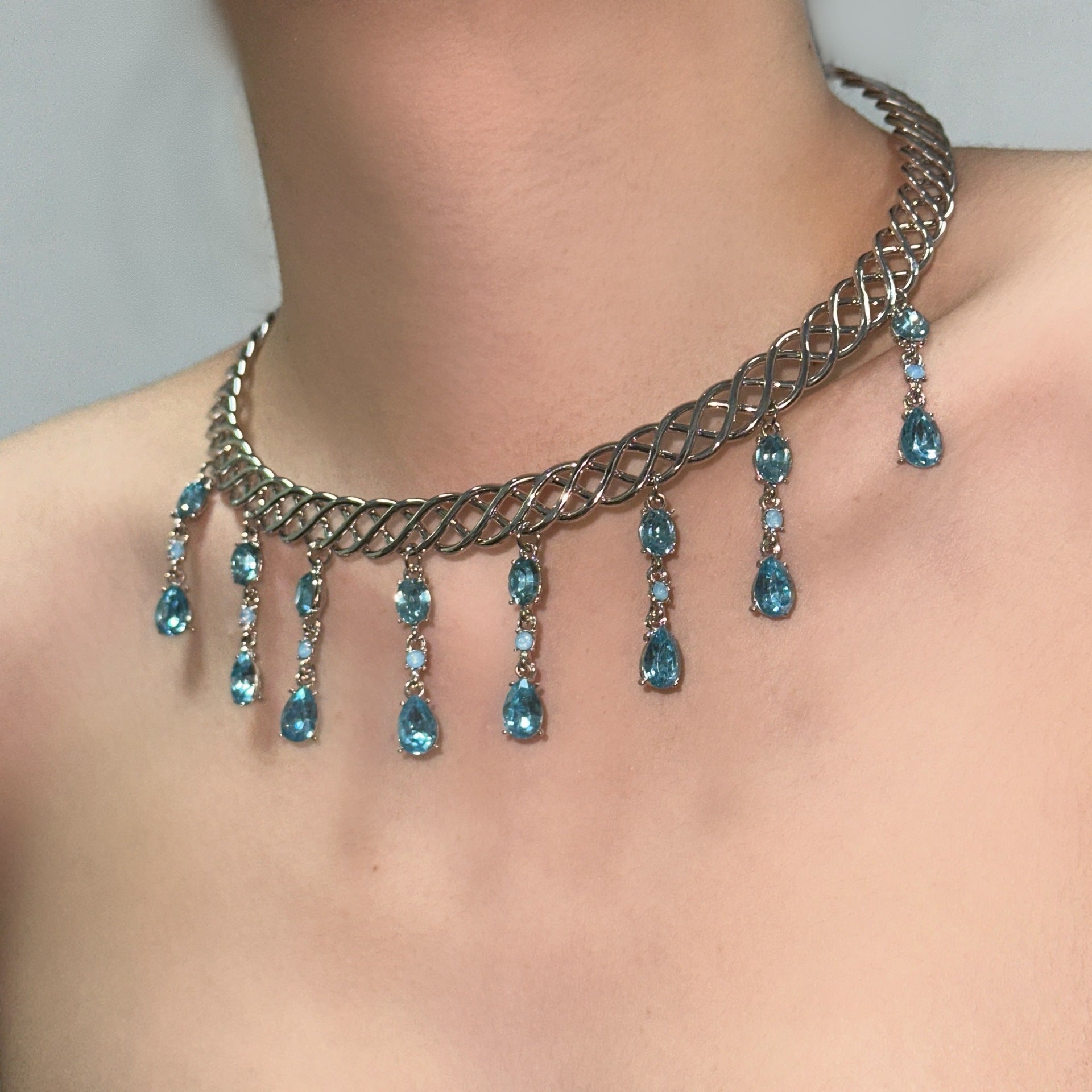 Wholesale Blue Water Drop Zircon Collar Female Necklaces