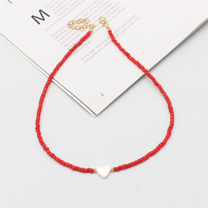 Wholesale bohemian style hand-woven shell love rice beads beaded necklace