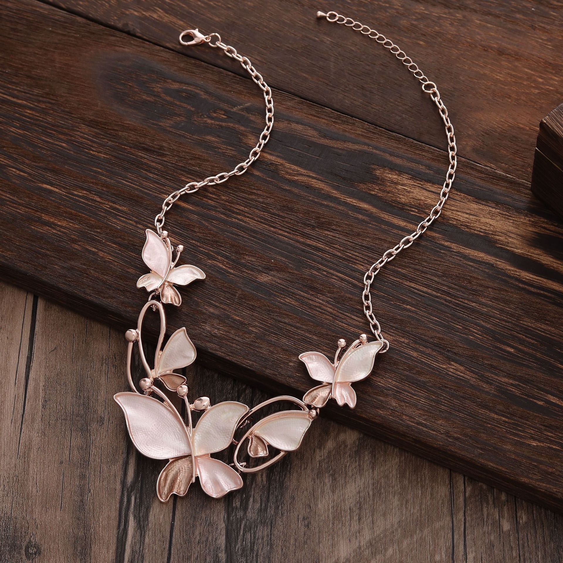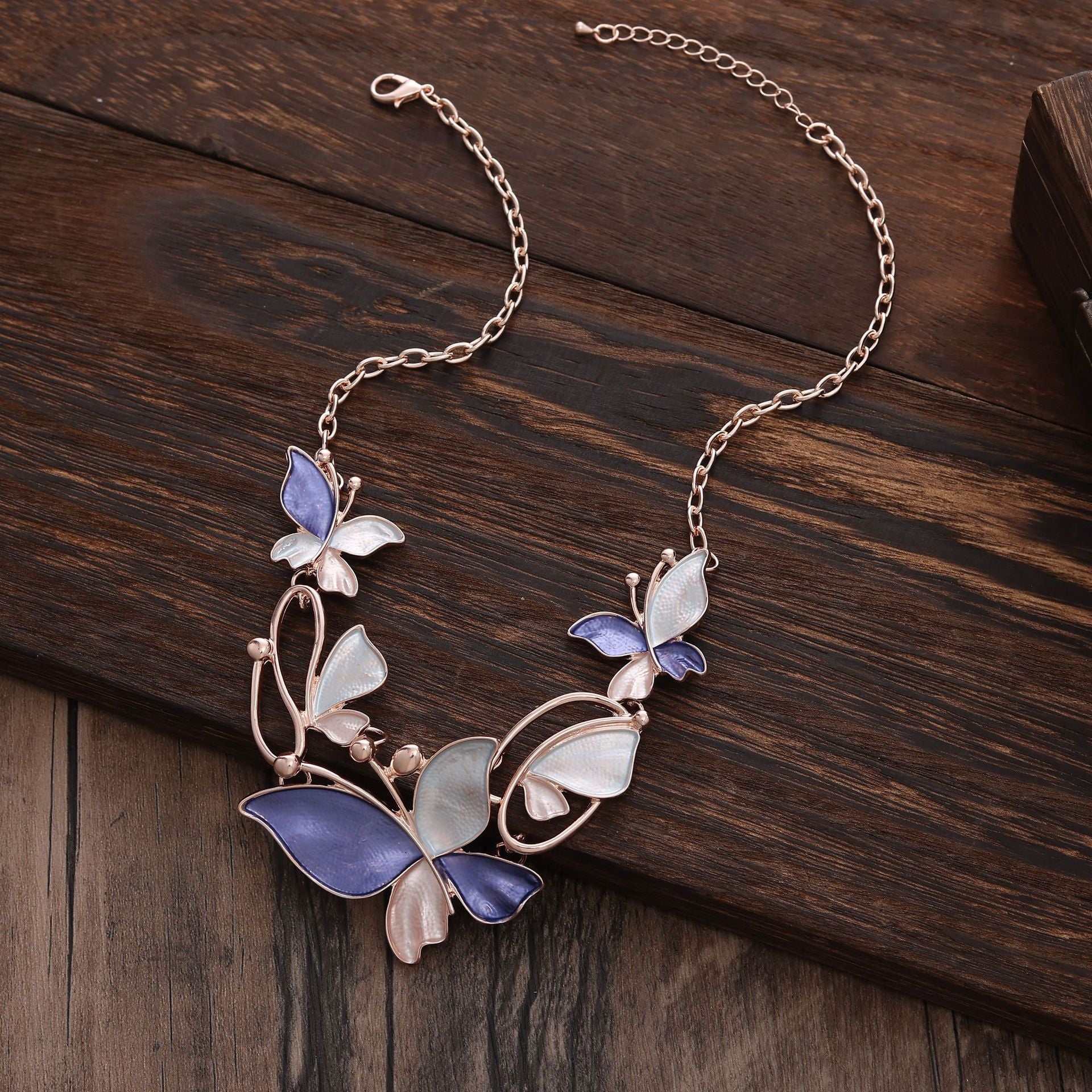 Wholesale color painting oil butterfly necklace geometric hollow butterfly flying necklace