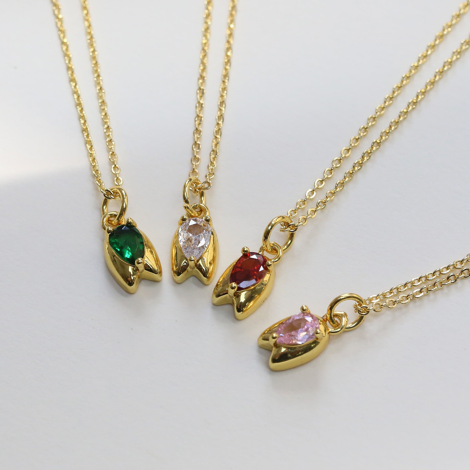Wholesale Light luxury zircon rose flower bud pendant necklace
