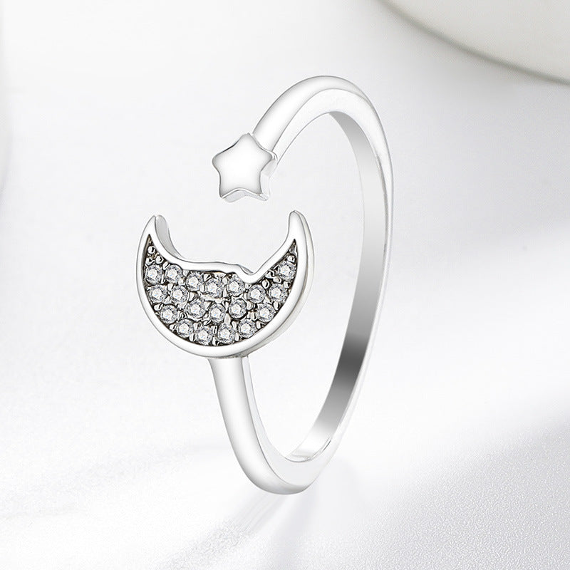 Wholesale Adjustable rhinestone bronze star and moon ring