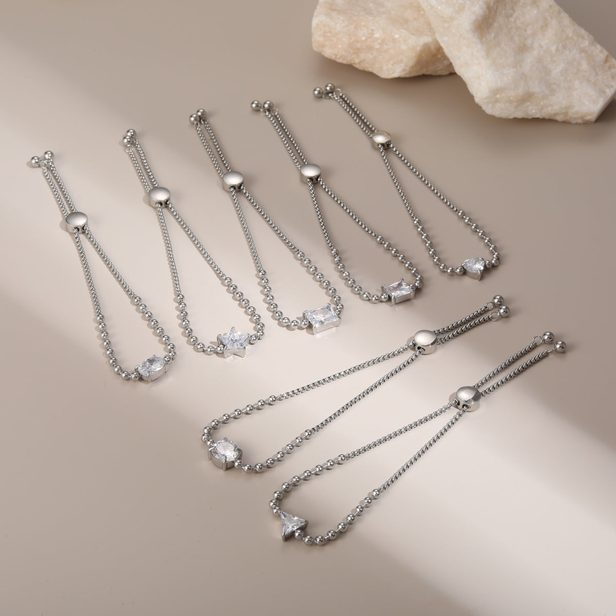 Wholesale Stainless steel heart and star geometric zircon bracelet