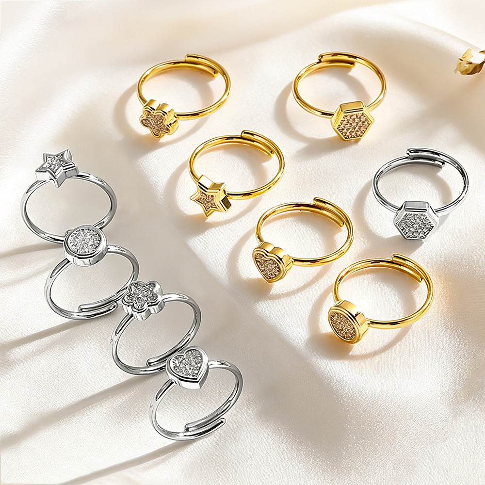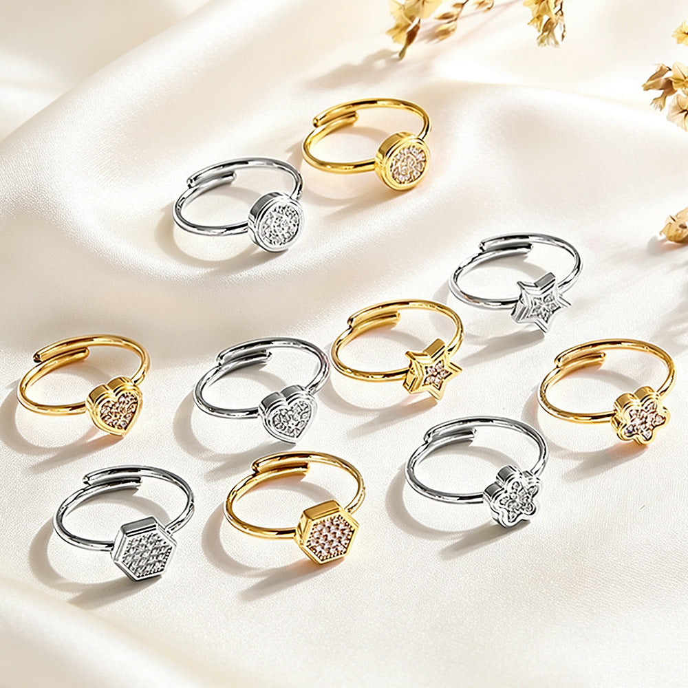 Wholesale 2PCS Titanium steel heart and flower geometric open ring