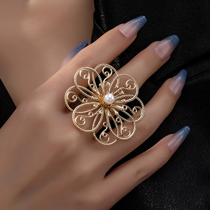 Wholesale Exaggerated New Flower Women' s Ring Fashion Metal Hollow Flower Exaggerated Bracelet Ring