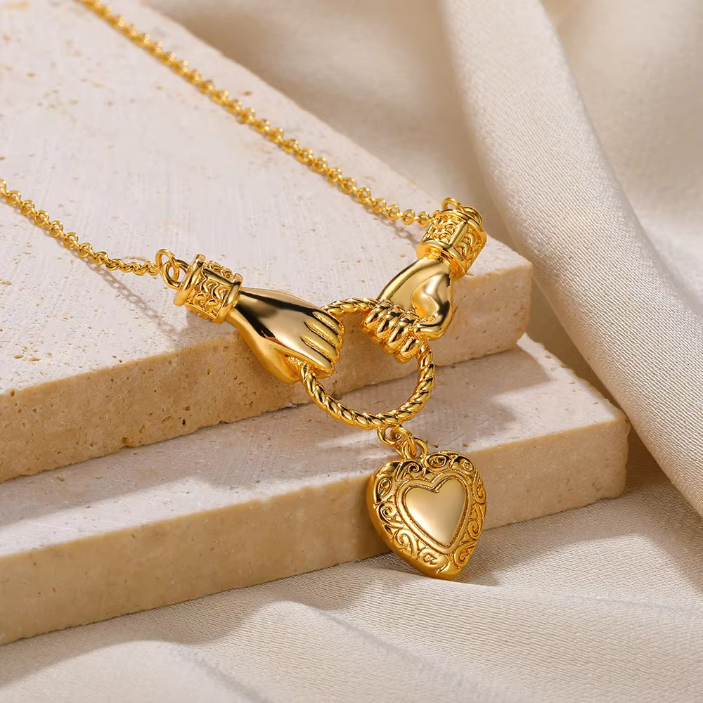 Wholesale Stainless steel Plated 18K Gold Hand Pendant Blue Zircon Clavicle Chain