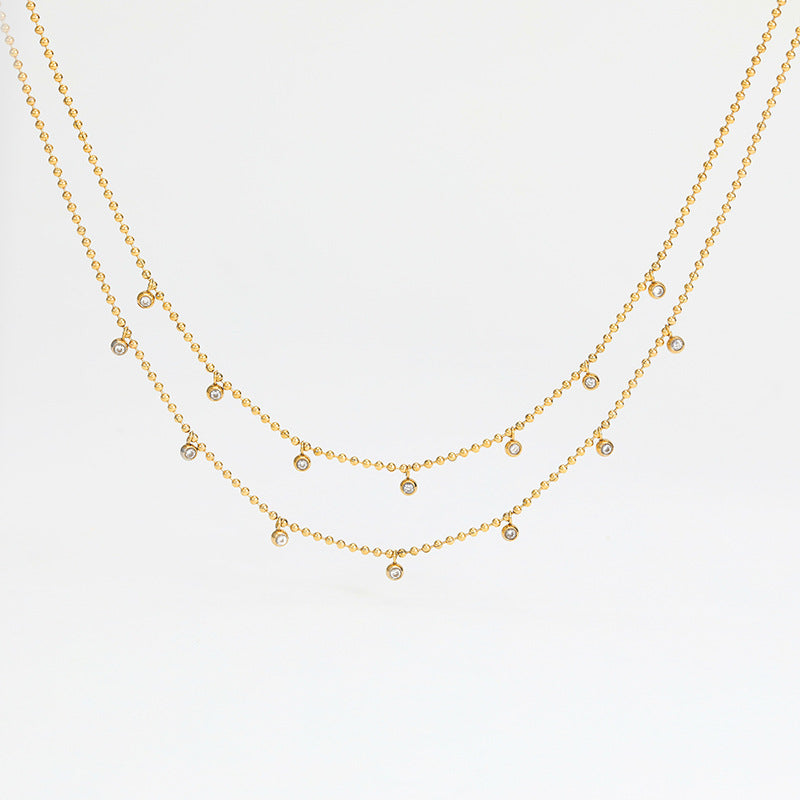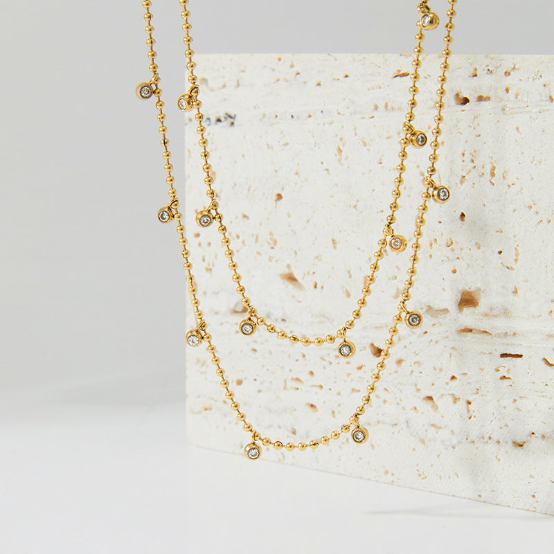 Wholesale Stainless steel Double-layer stacked zircon necklace