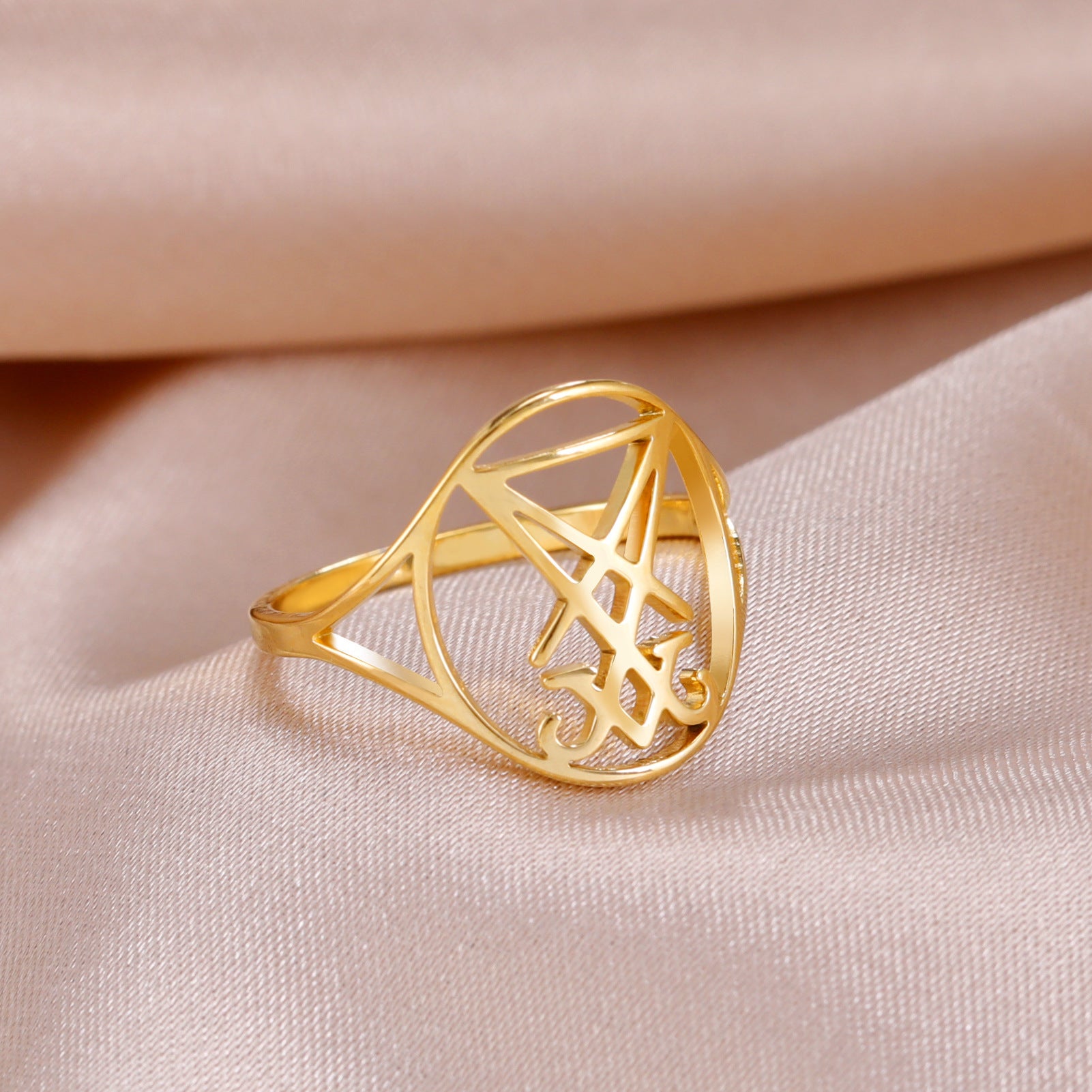 Wholesale fashion personality 18K real gold plating cutting small inverted triangle cross V hook shape stainless steel ring