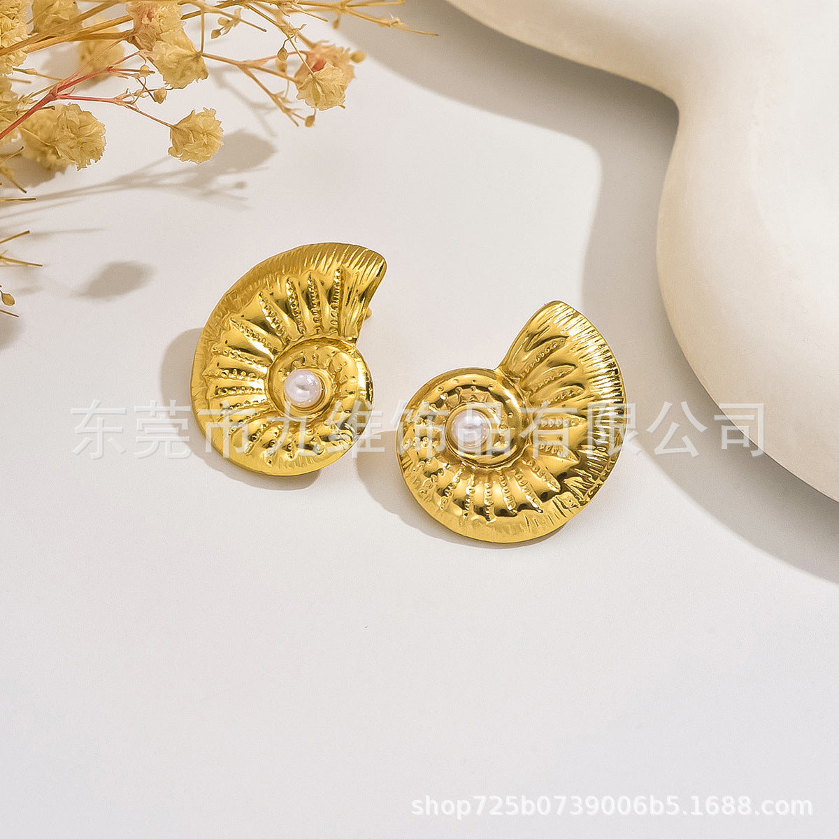Wholesale Light Luxury Stainless steel High-end Conch Texture Earrings