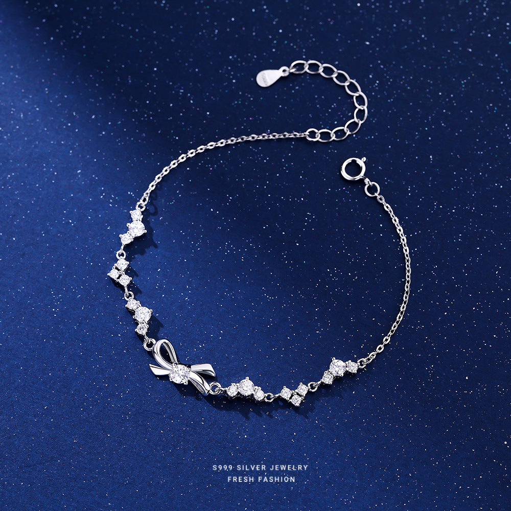 Wholesale s999 Silver Shiny Zircon Bow Bracelet Light Luxury Jewelry Bracelet