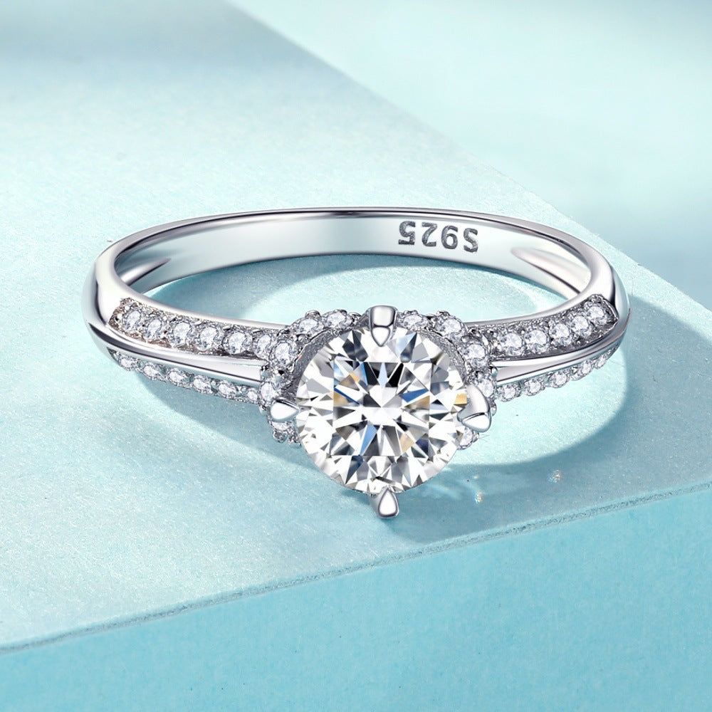 Wholesale Valentine's Day Gift Starlight Mosan Ring 925 Sterling Silver Four Claw Ring