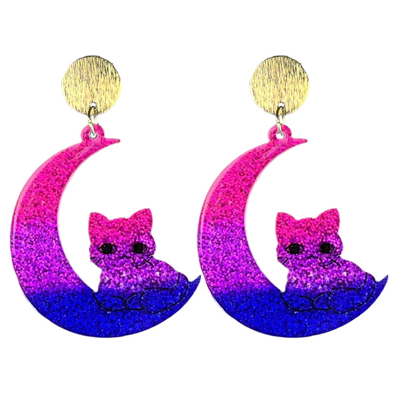 Wholesale 2 pairs/ pack Sparkling acrylic flower moon and cat earrings