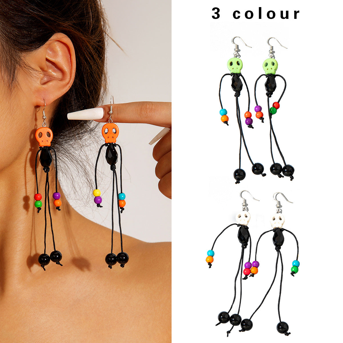 Wholesale Creative Tassel Beaded Ghost Head Long Earrings