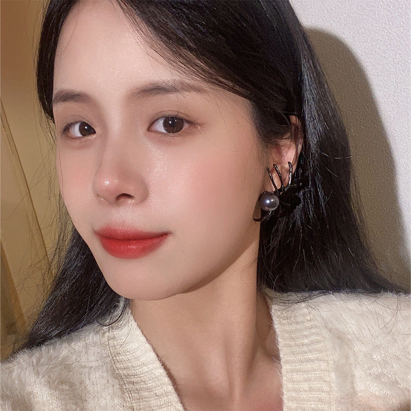 Wholesale exaggerated retro punk Black alloy pearl earrings