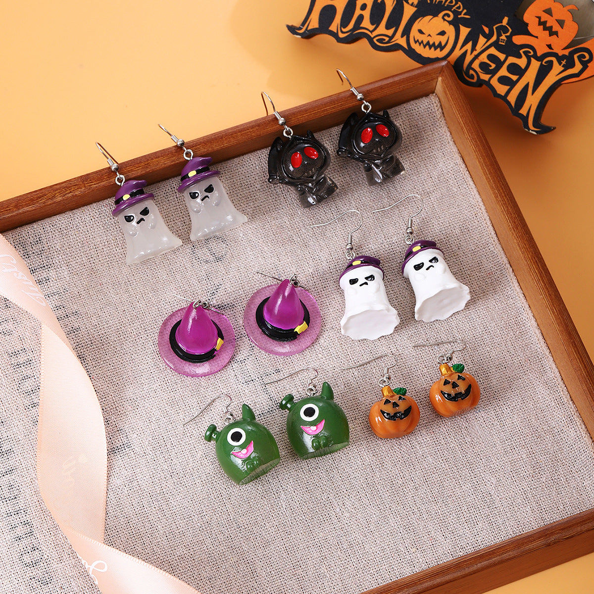 Wholesale fun cartoon pumpkin ghost resin earrings