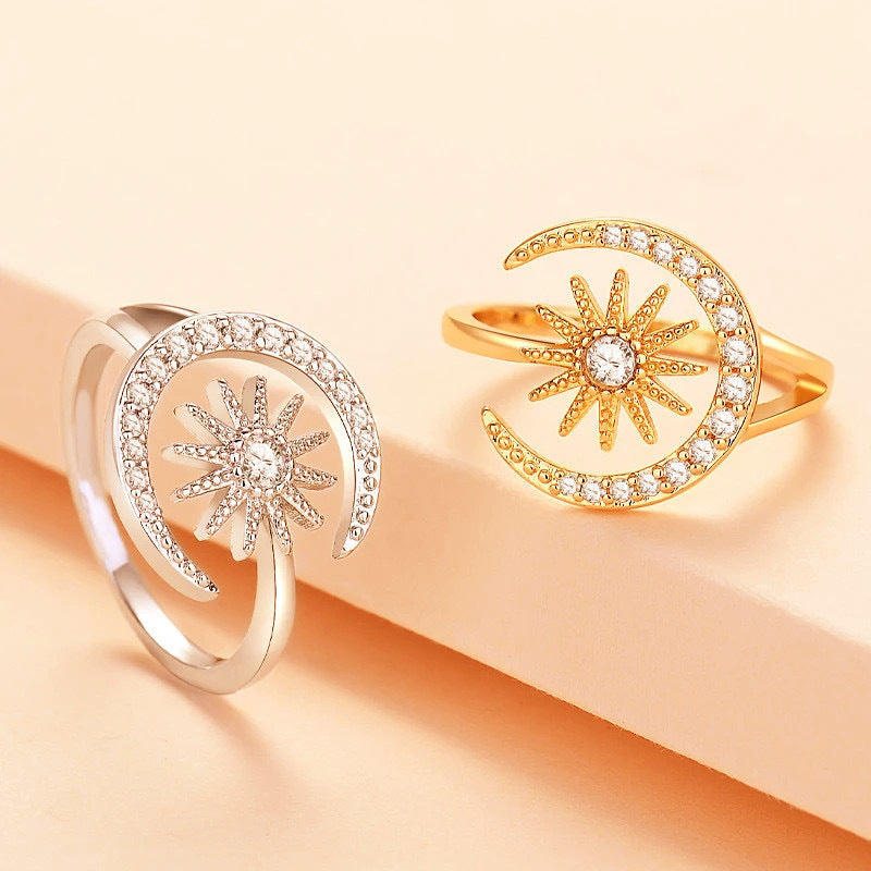 Wholesale Geometric Micro-Encrusted Diamond-Encrusted Sun and Moon Inlaid Open Ring