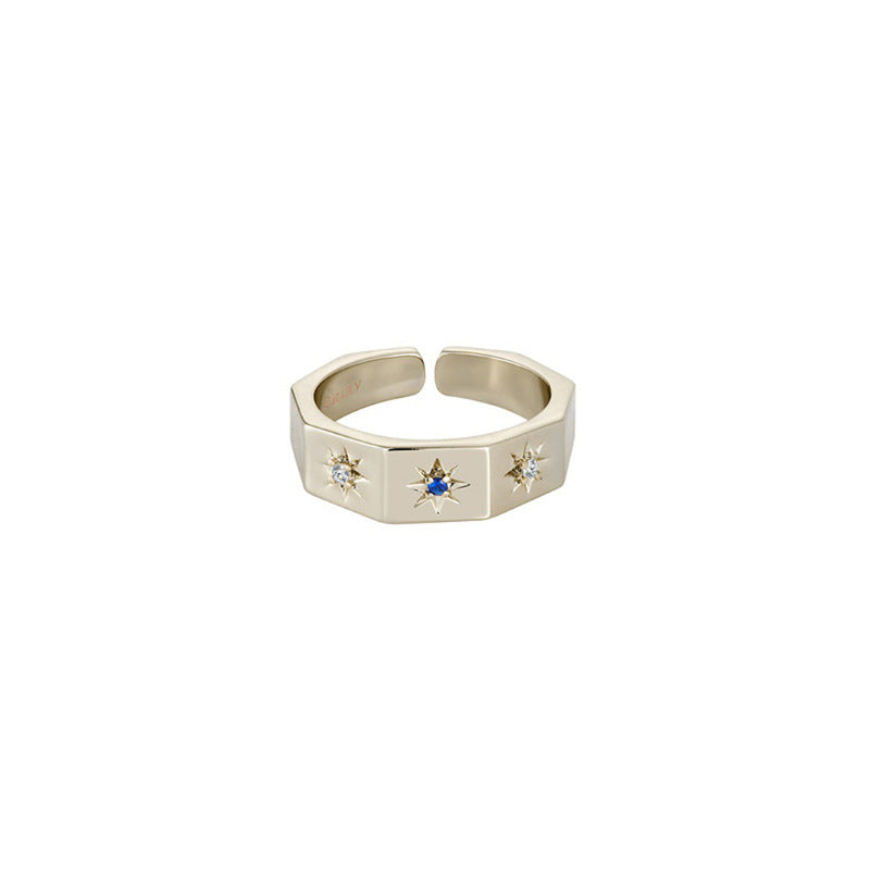 Wholesale geometric wide surface diamond-embedded cross mango star ring