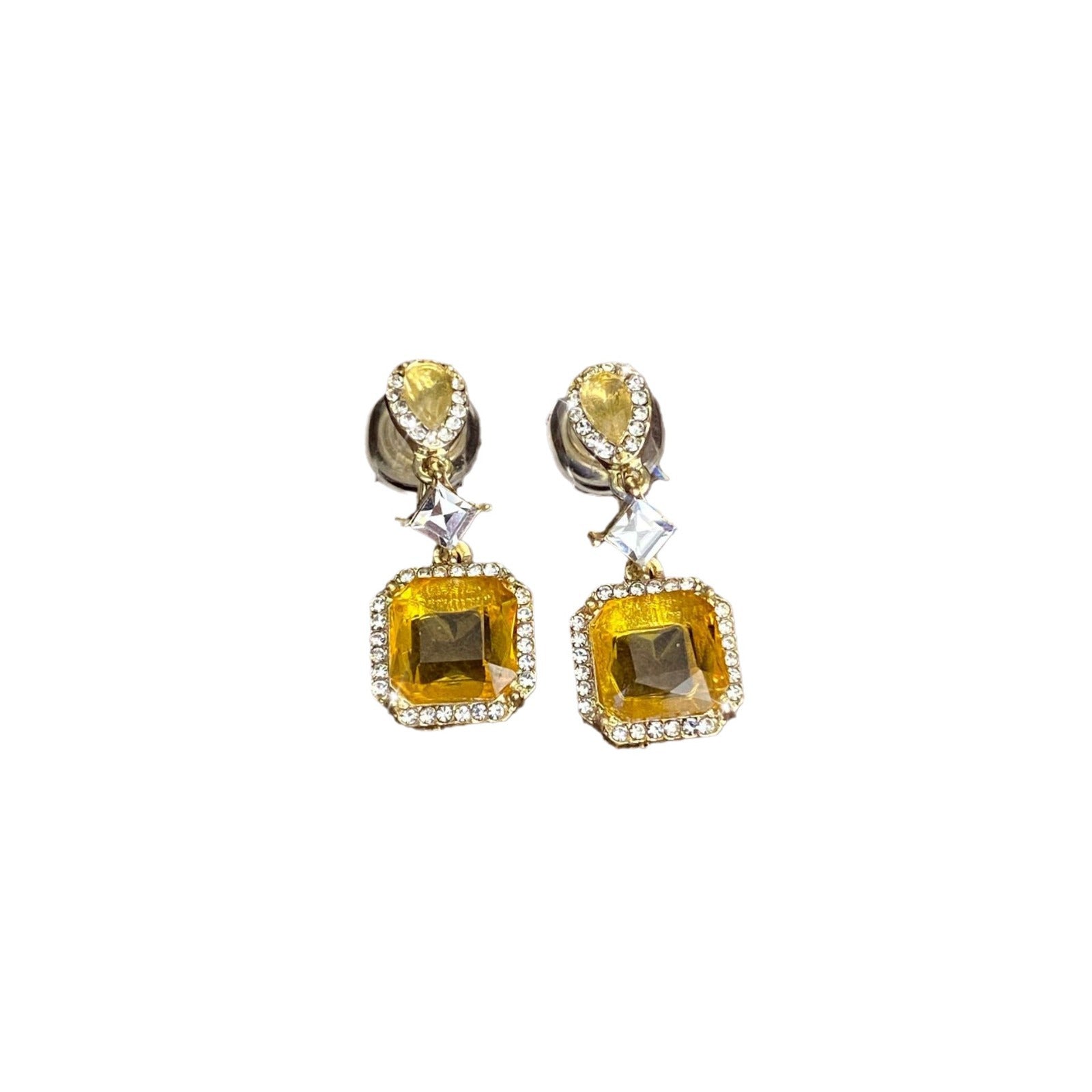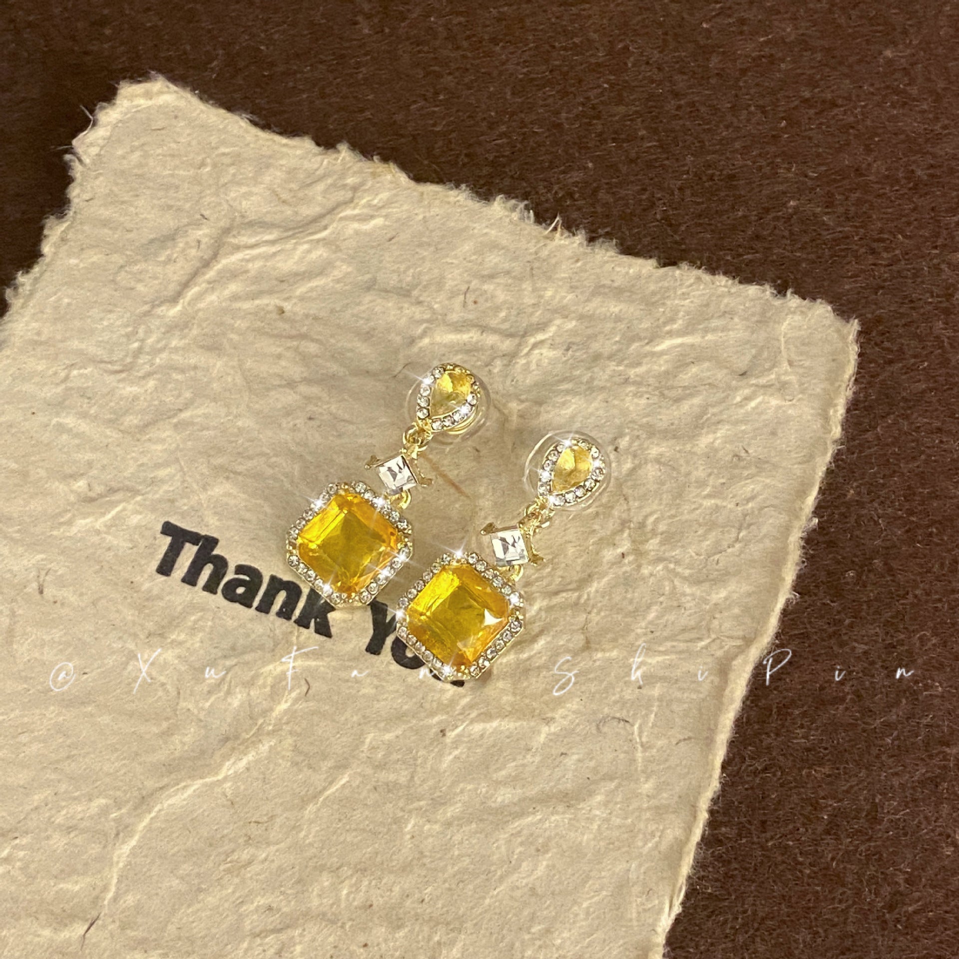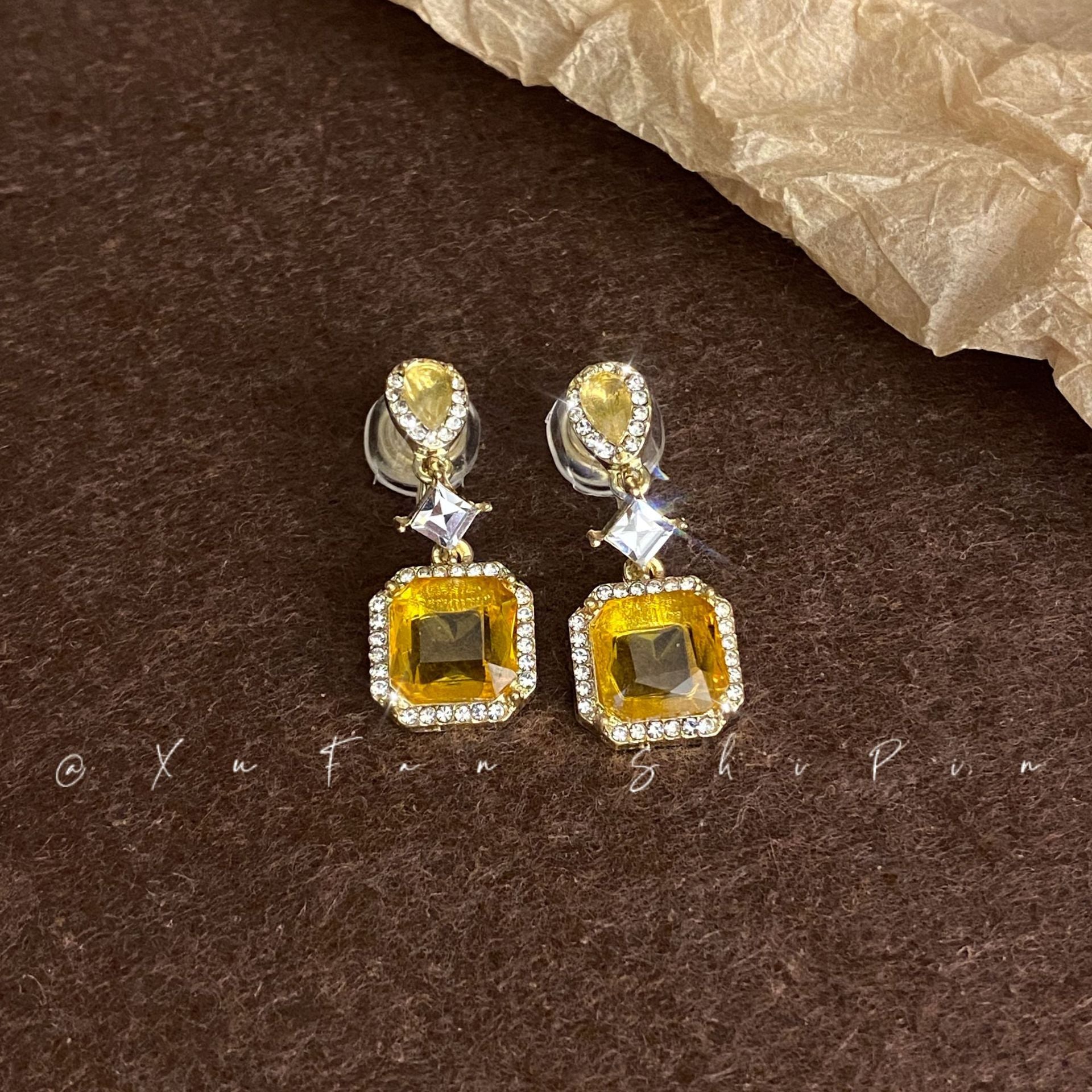 Wholesale Light Luxury Champagne Golden Crystal Geometric Ear Clip Earrings