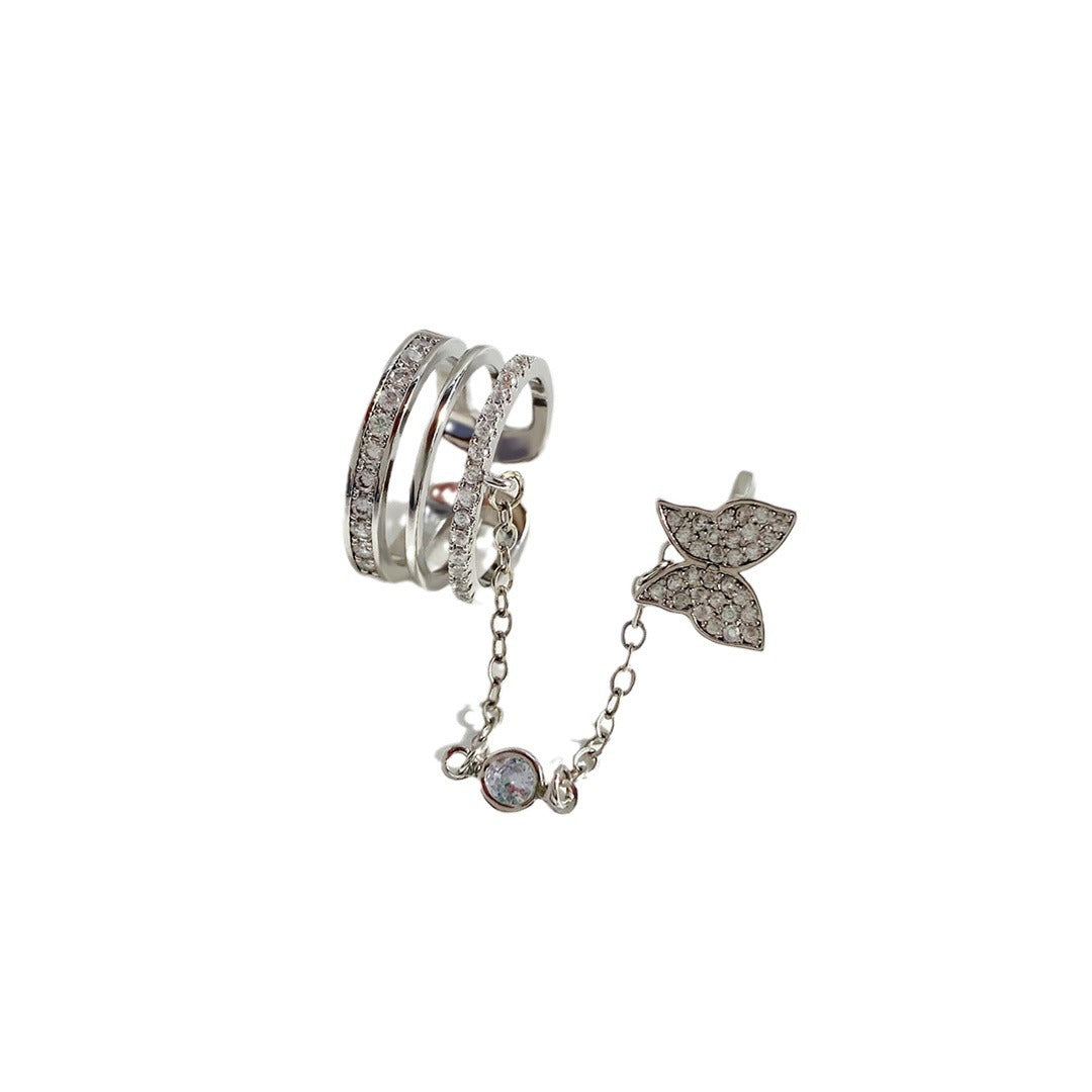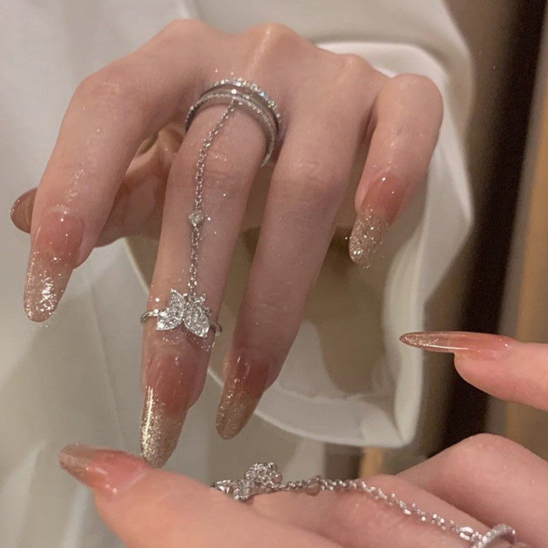 Wholesale Light Luxury Micro-inlaid Butterfly Hollow Geometric Opening One-piece Nail Ring