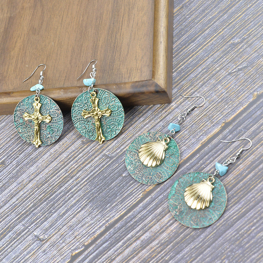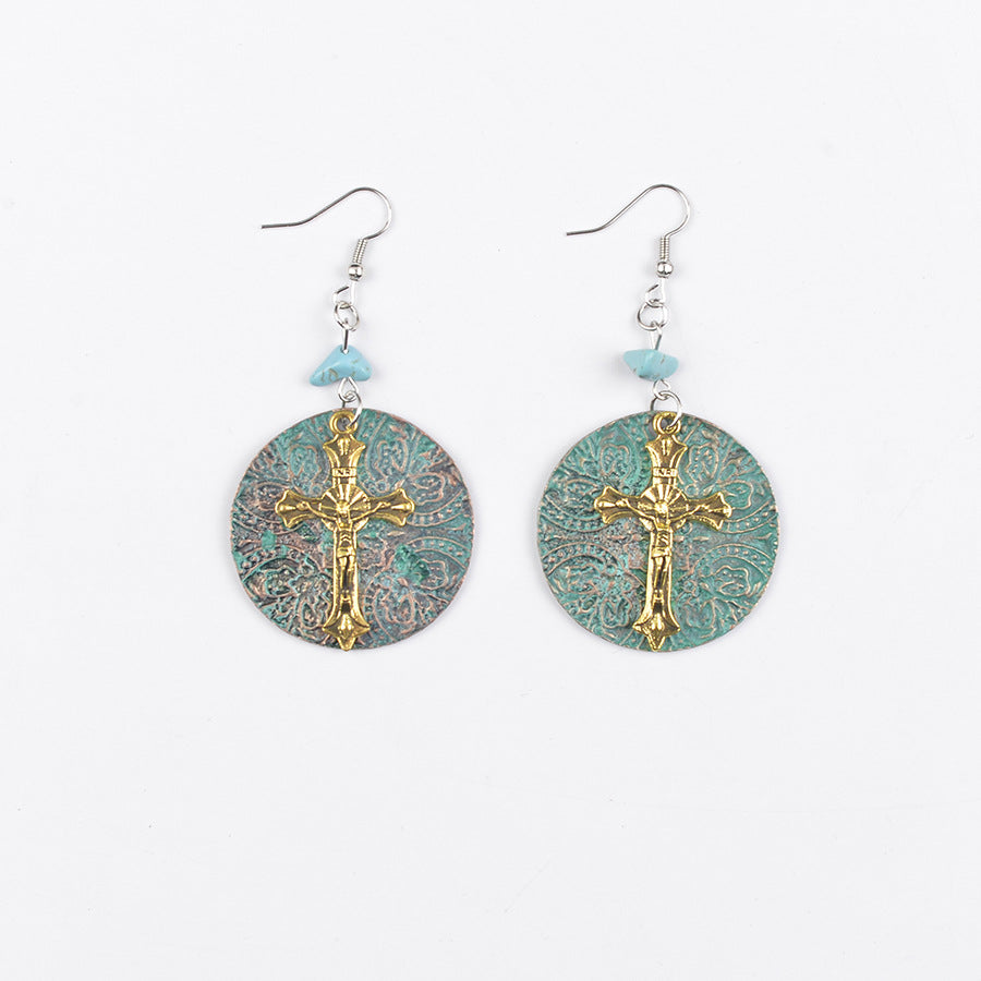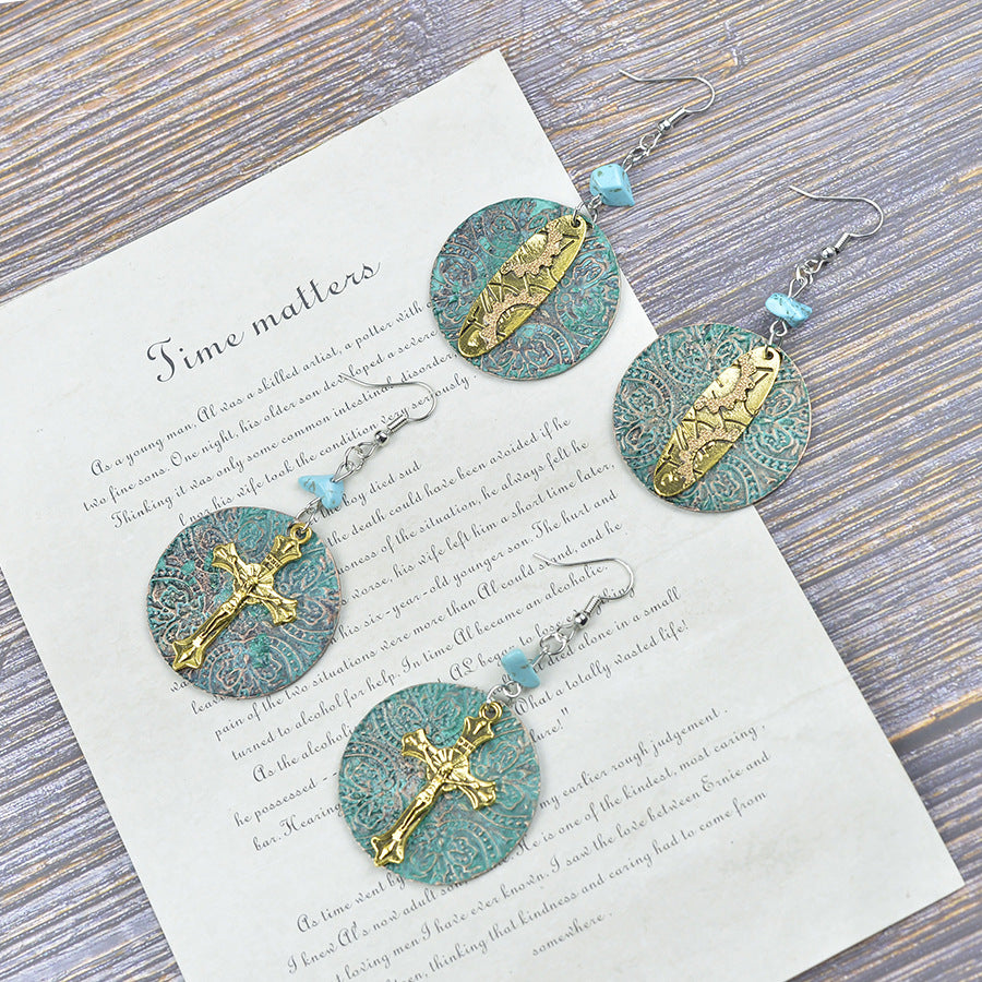 Wholesale Retro Bohemian Double-Layer Cross Pattern Earrings