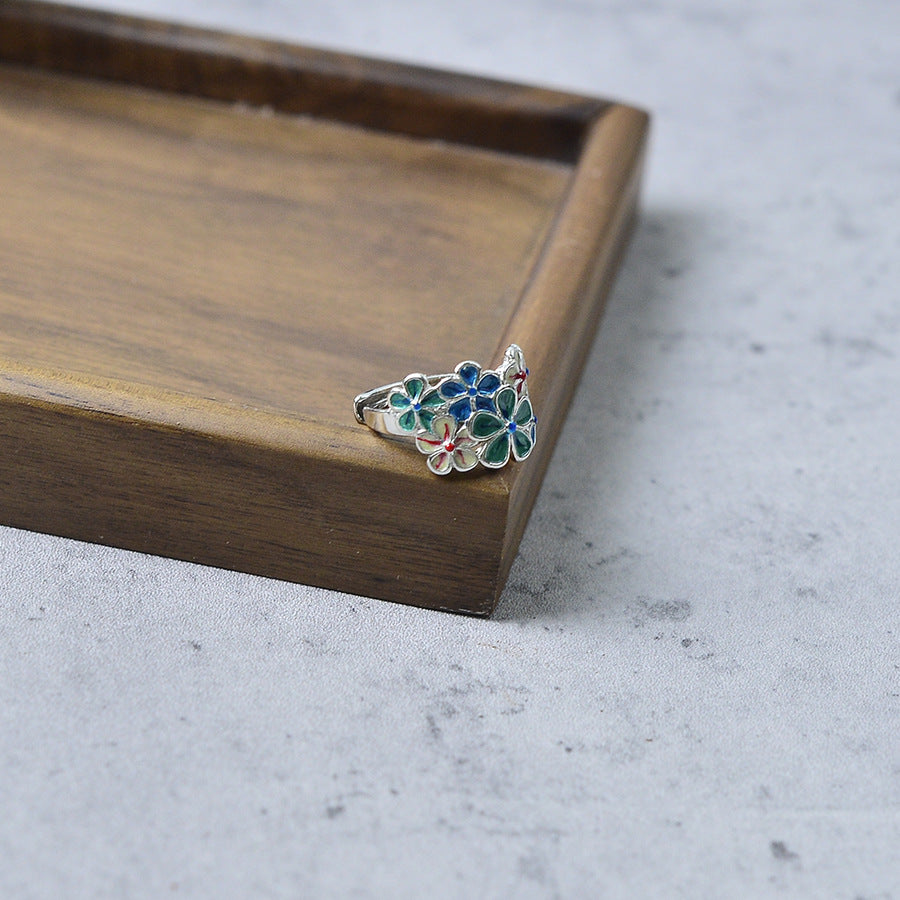 Wholesale Retro Enamel Colorful Flower Opening Adjustable Ring