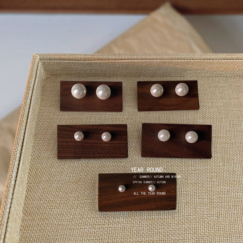 Wholesale retro Pearl 925 silver pin earrings
