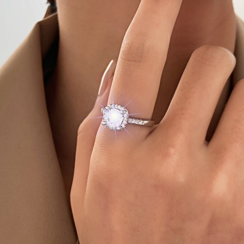 Wholesale Shiny Full Diamond Opening Four-claw Square Diamond Ring