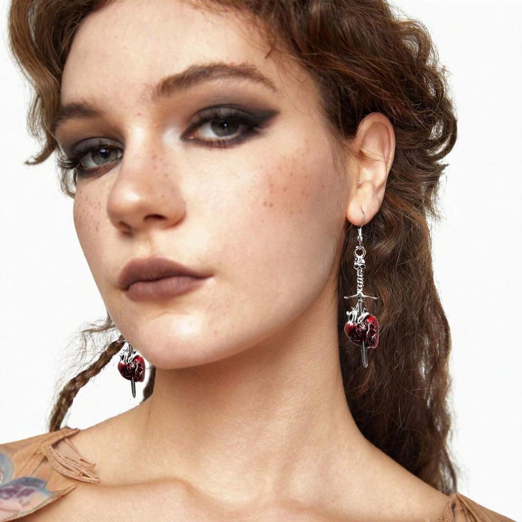 Wholesale Sword Piercing Heart Girl' s Earrings