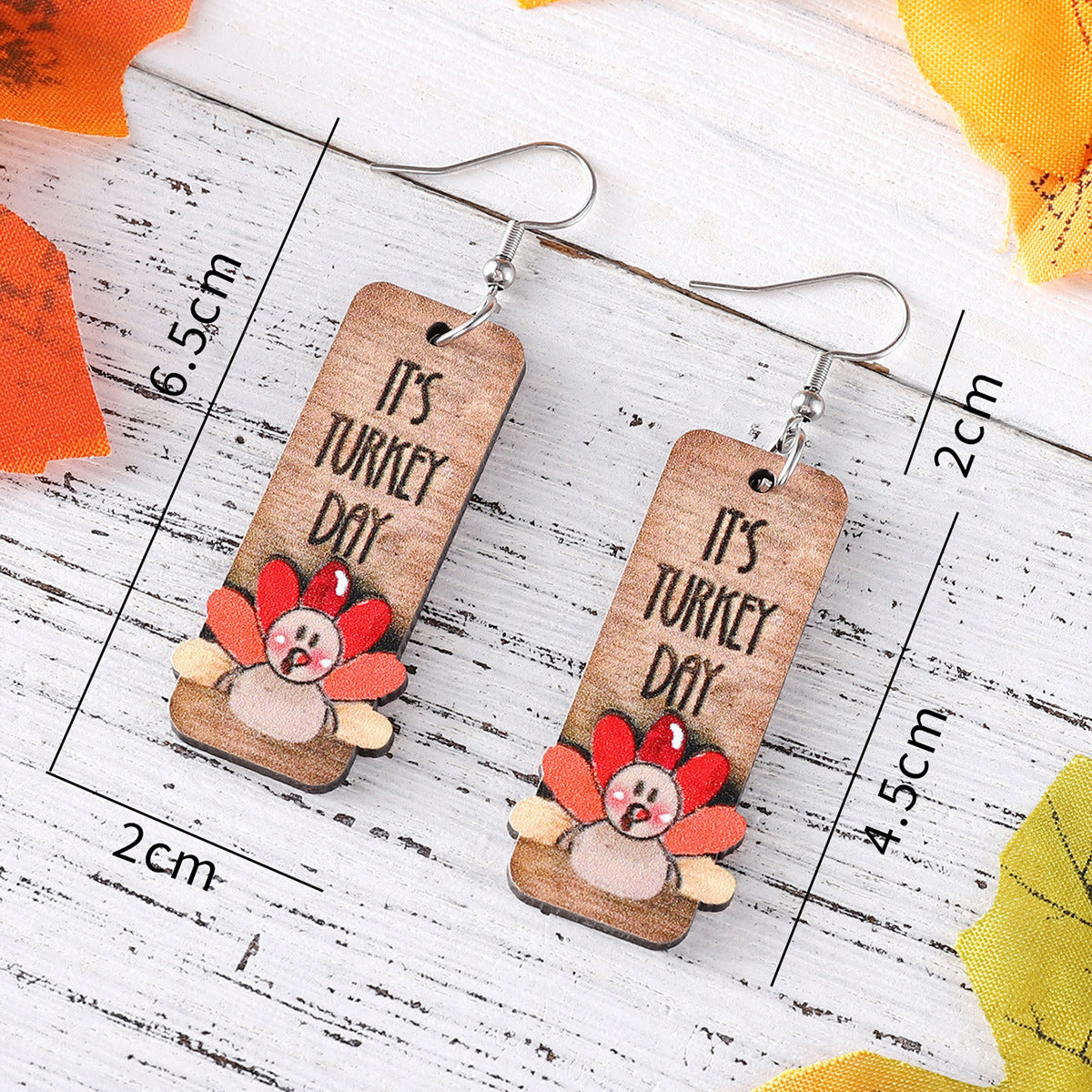 Wholesale Thanksgiving Funny Turkey Pendant Wooden Earrings